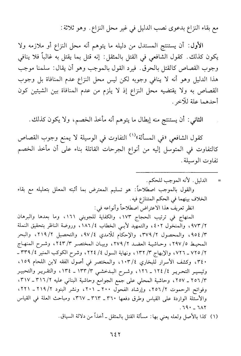 الأول: أن يستنتج المستدل من دليله ما يتوهم أنه محل النزاع أو ملازمه ولا يكون كذلك. كقول الشافعي في القتل بالمثقل: إنه قتل به غالبا فلا ينافي وجوب القصاص كالقتل بالحرق. فيرد القول بالموجب وهو أن يقال: سلمنا موجب هذا الدليل وهو أنه لا ينافي وجوبه لكن ليس محل النزاع عدم المنافاة بل وجوب القصاص به ولا يقتضيه محل النزاع إذ لا يلزم من عدم المنافاة بين الشيئين كون أحدهما علة للآخر.