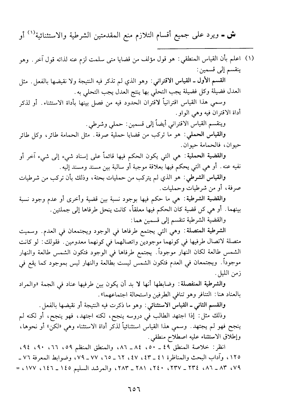ش - ويرد على جميع أقسام التلازم منع المقدمتين الشرطية والاستثنائية أو