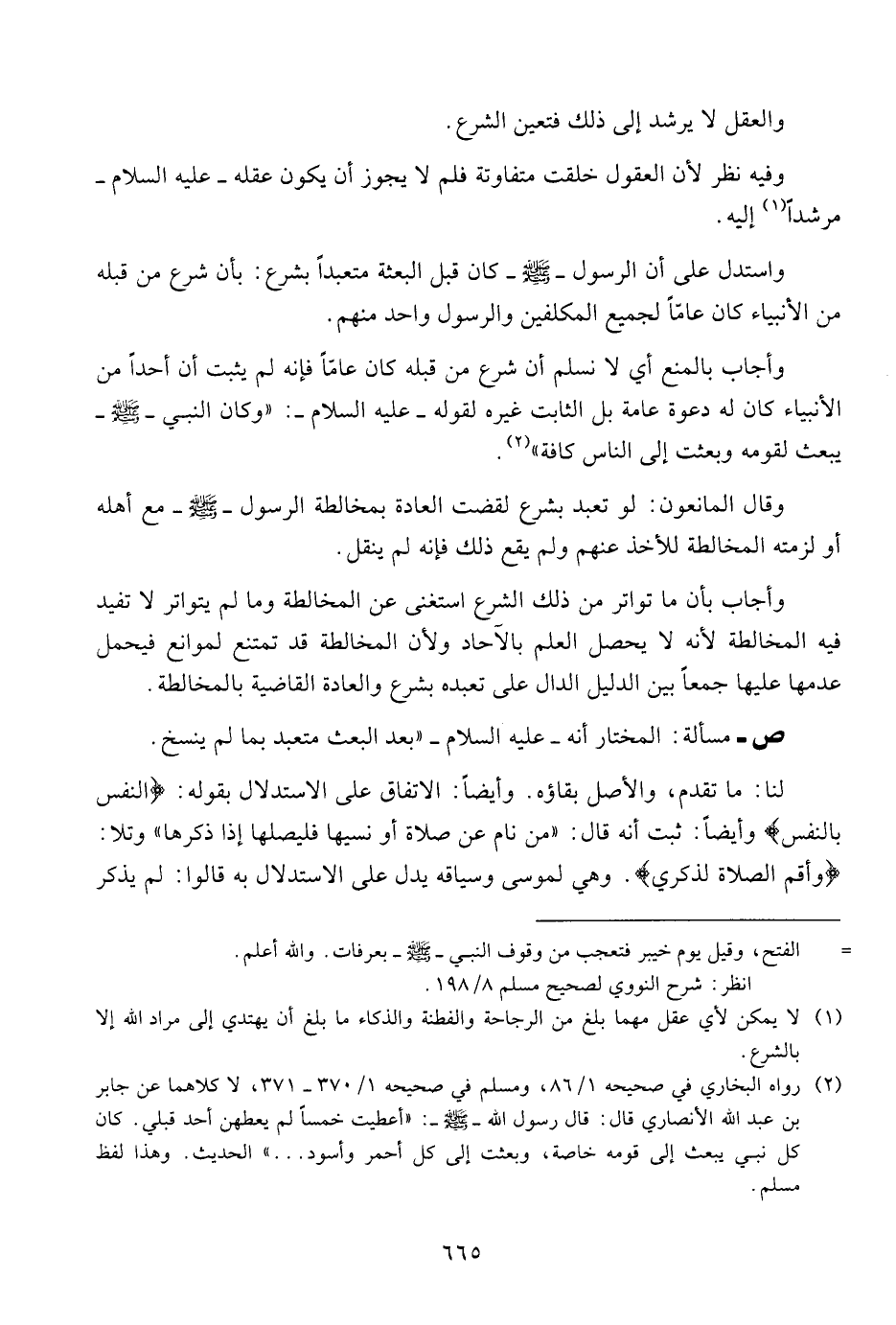 ص - مسألة: المختار أنه - عليه السلام - " بعد البعث متعبد بما لم ينسخ.