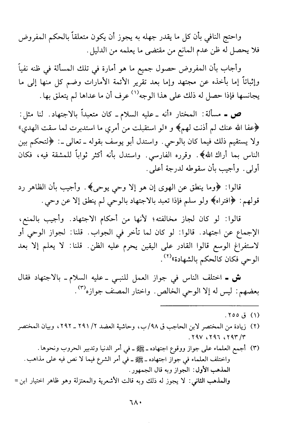 ش - اختلف الناس في جوتز العمل للنبي - عليه السلام - بالاجتهاد فقال بعضهم: ليس له إلا الوحي الخالص. واختار المصنف جوازه.