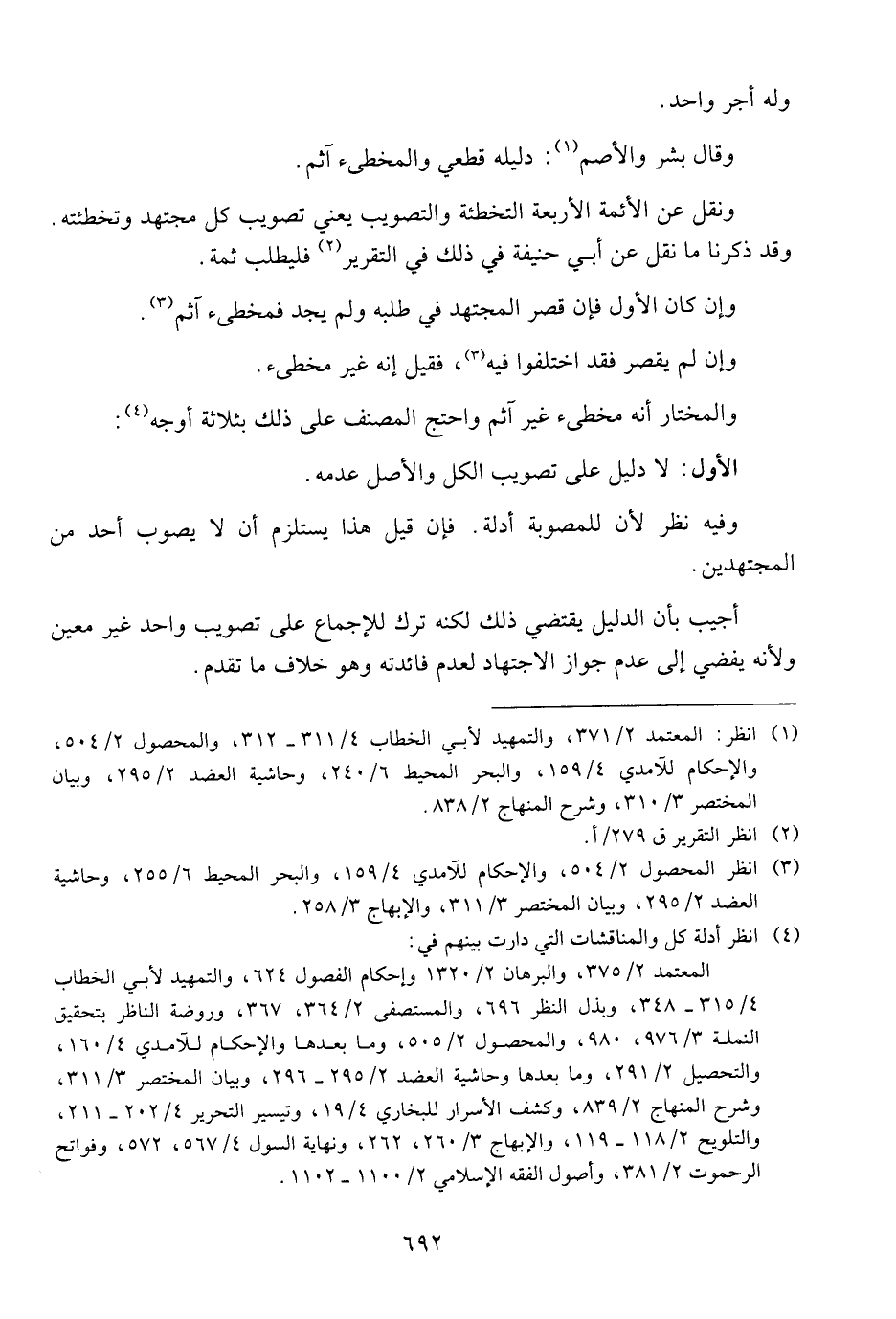 وقال بشر والأصم: دليله قطعي والمخطئ آثم.