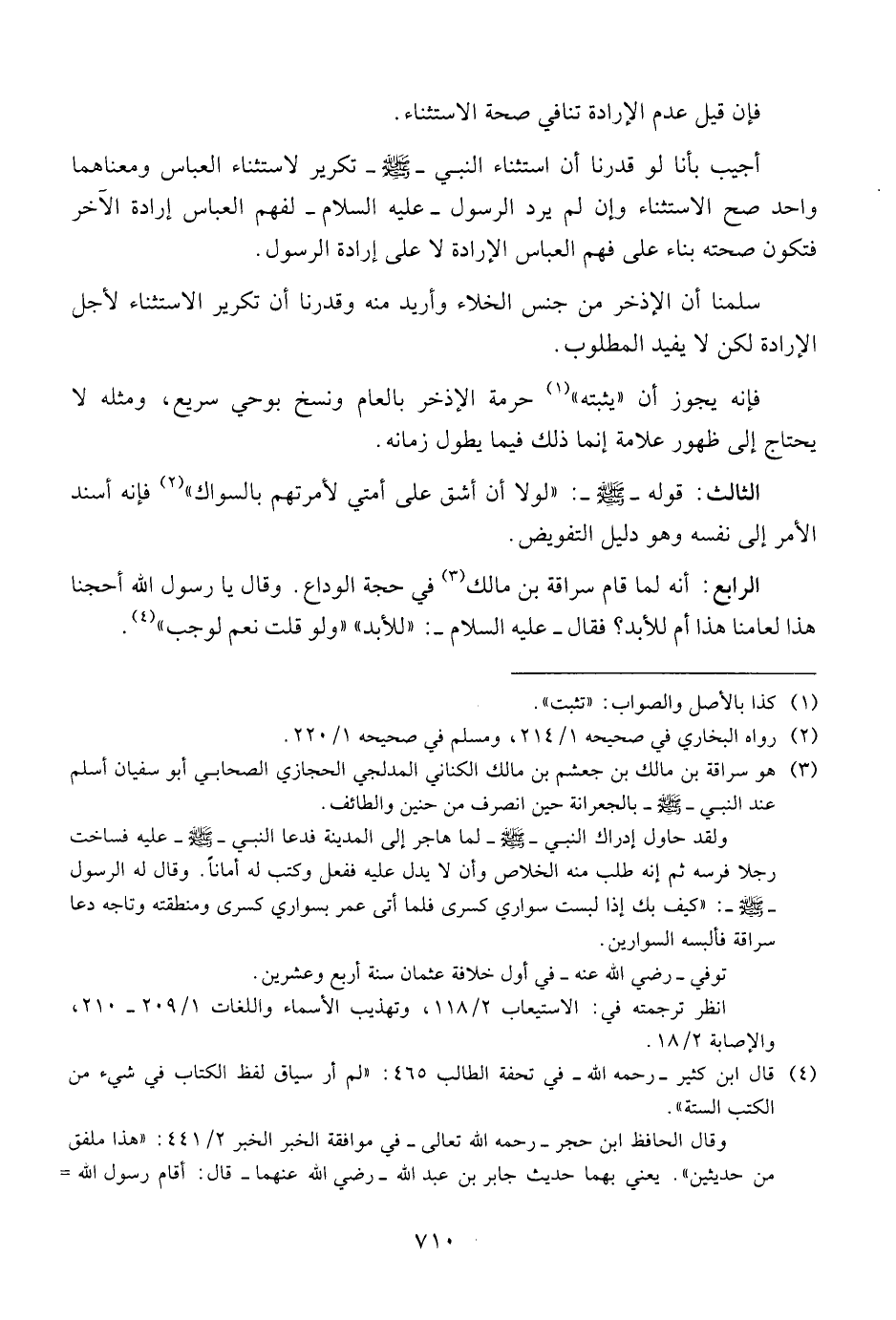 أجيب بأنا لو قدرنا أن استثناء النبي - صلى الله عليه وسلم - تكرير لاستثناء العباس ومعناهما واحد صح الاستثناء وإن لم يرد الرسول - عليه السلام - لفهم العباس إرادة الآخر فتكون صحته بناء على فهم العباس الإرادة لا على إرادة الرسول.