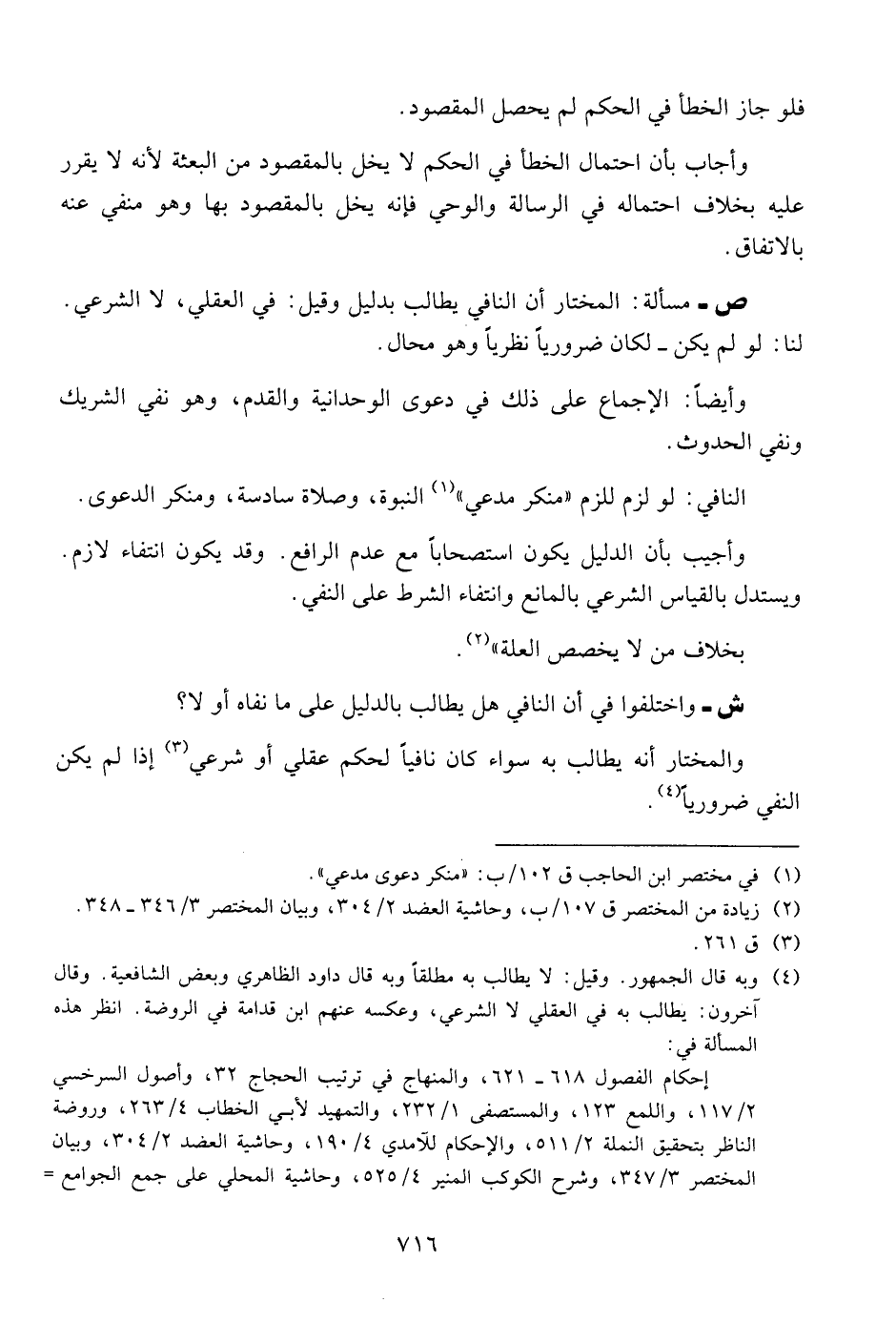 ش - واختلفوا في أن النافي هل يطالب بالدليل على ما نفاه أو لا؟