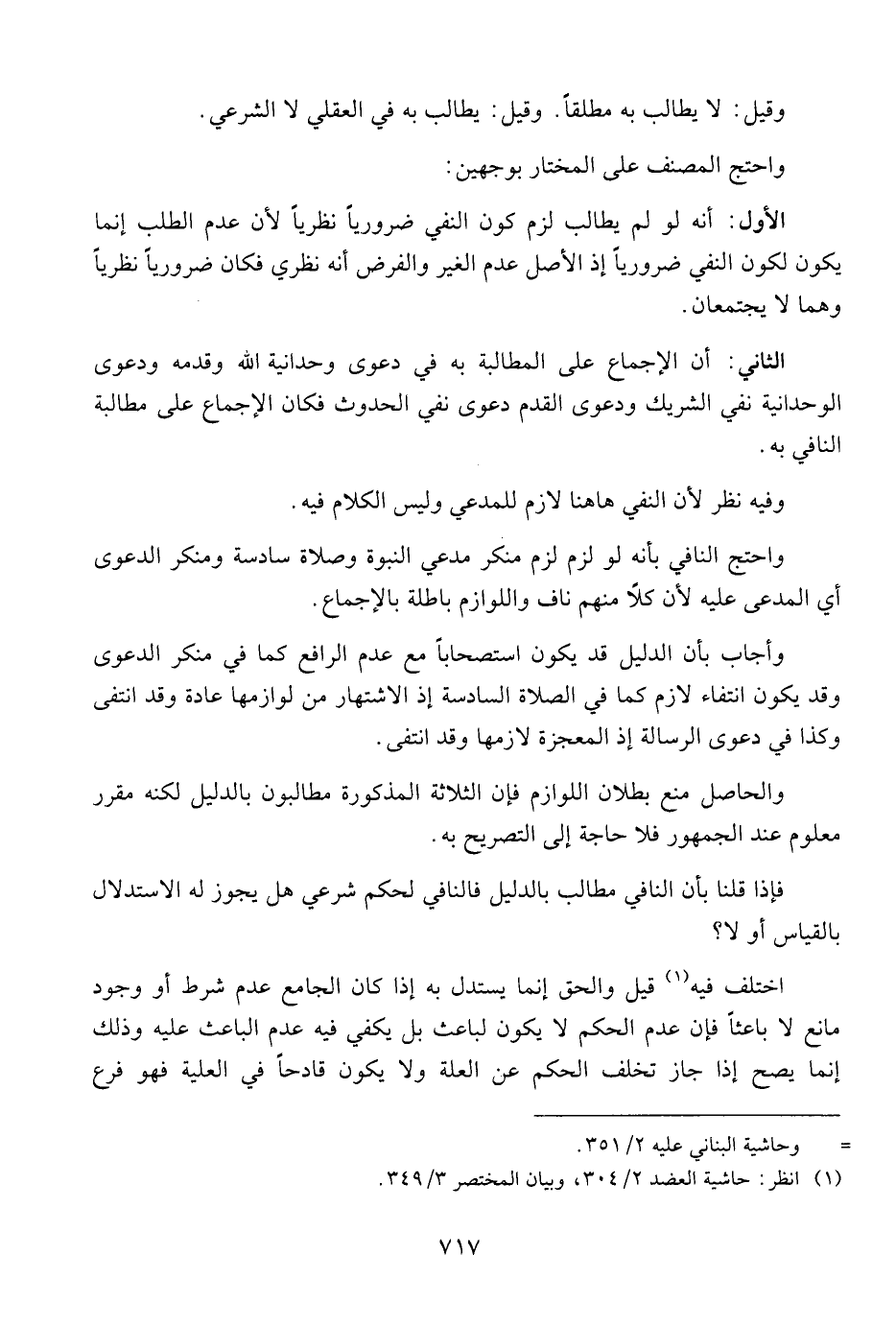 الأول: أنه لو لم يطالب لزم كون النفي ضروريا نظريا لأن عدم الطلب إنما يكون لكون النفي ضروريا إذ الأصل عدم الغير والفرض أنه نظري فكان ضروريا نظريا وهما لا يجتمعان.