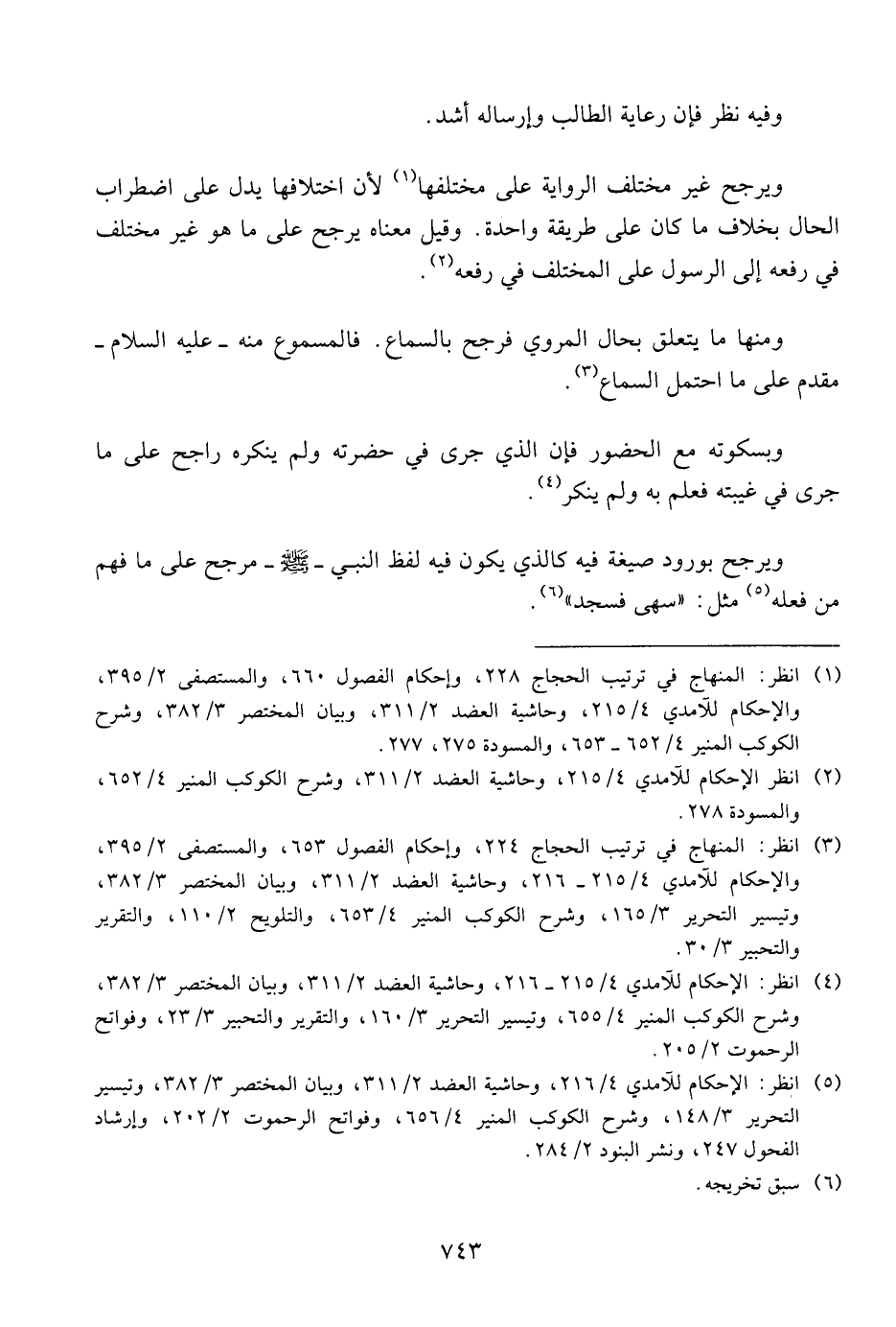ومنها ما يتعلق بحال المروي فرجع بالسماع. فالمسموع منه - عليه السلام - مقدم على ما احتمل السماع.