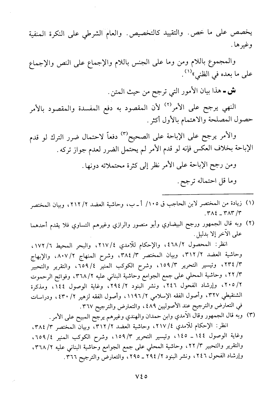 ش - هذا بيان الأمور التي ترجح من حيث المتن.