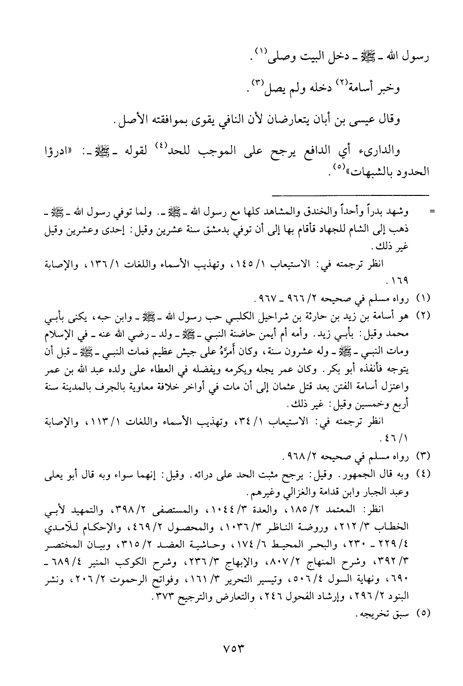 والدارئ أي الدافع يرجح على الموجب للحد لقوله - صلى الله عليه وسلم -: " ادرؤا الحدود بالشبهات ".