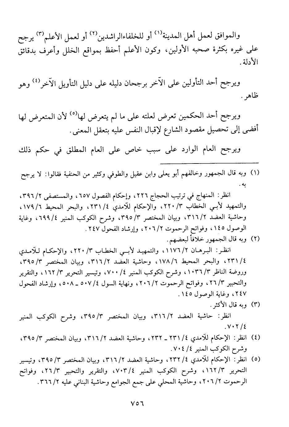 ويرجح أحد التأولين على الآخر برجحان دليله على دليل التأويل الآخر وهو ظاهر.