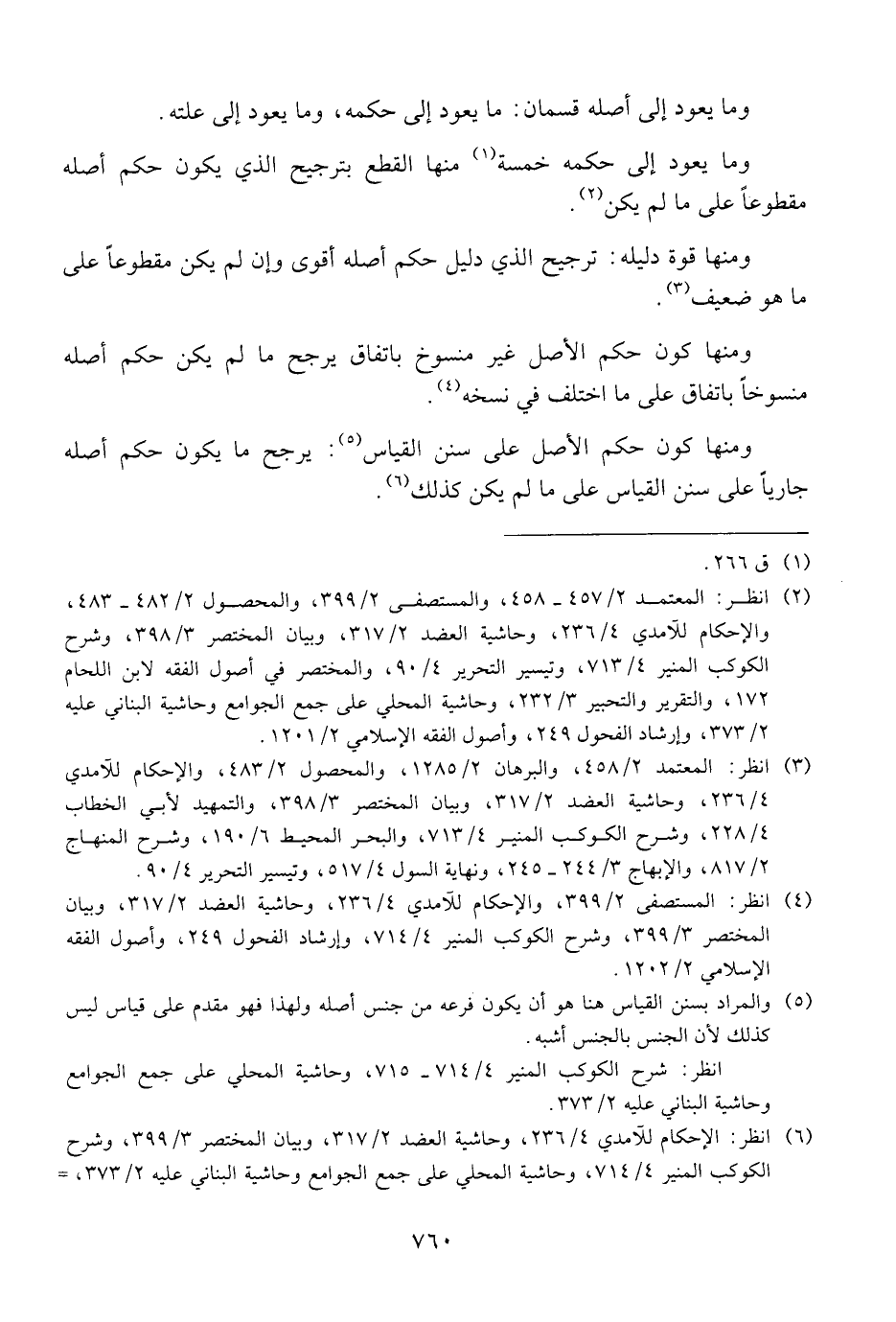 وما يعود إلى أصله قسمان: ما يعود إلى حكمه، وما يعود إلى علته.