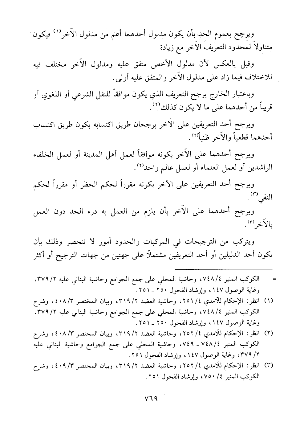 ويتركب من الترجيحات في المركبات والحدود أمور لا تنحصر وذلك بأن يكون أحد الدليلين أو أحد التعريفين مشتملا على جهتين من جهات الترجيح أو أكثر
