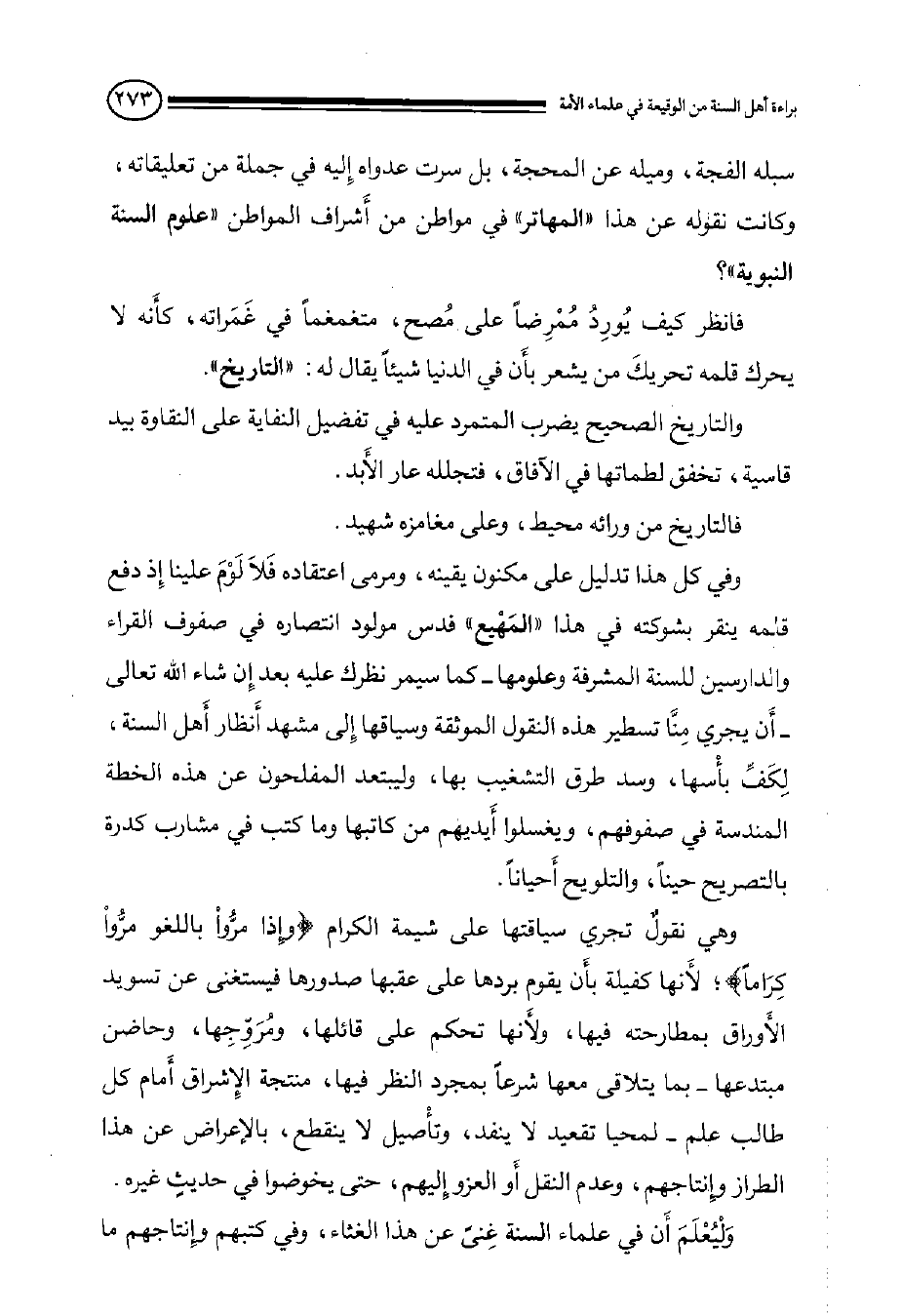 سبله الفجة, وميله عن المحجة, بل سرت عدواه إِليه في جملة من تعليقاته, وكانت نقوله عن هذا ((المهاتر)) في مواطن من أَشراف المواطن ((علوم السنة النبوية)) ؟