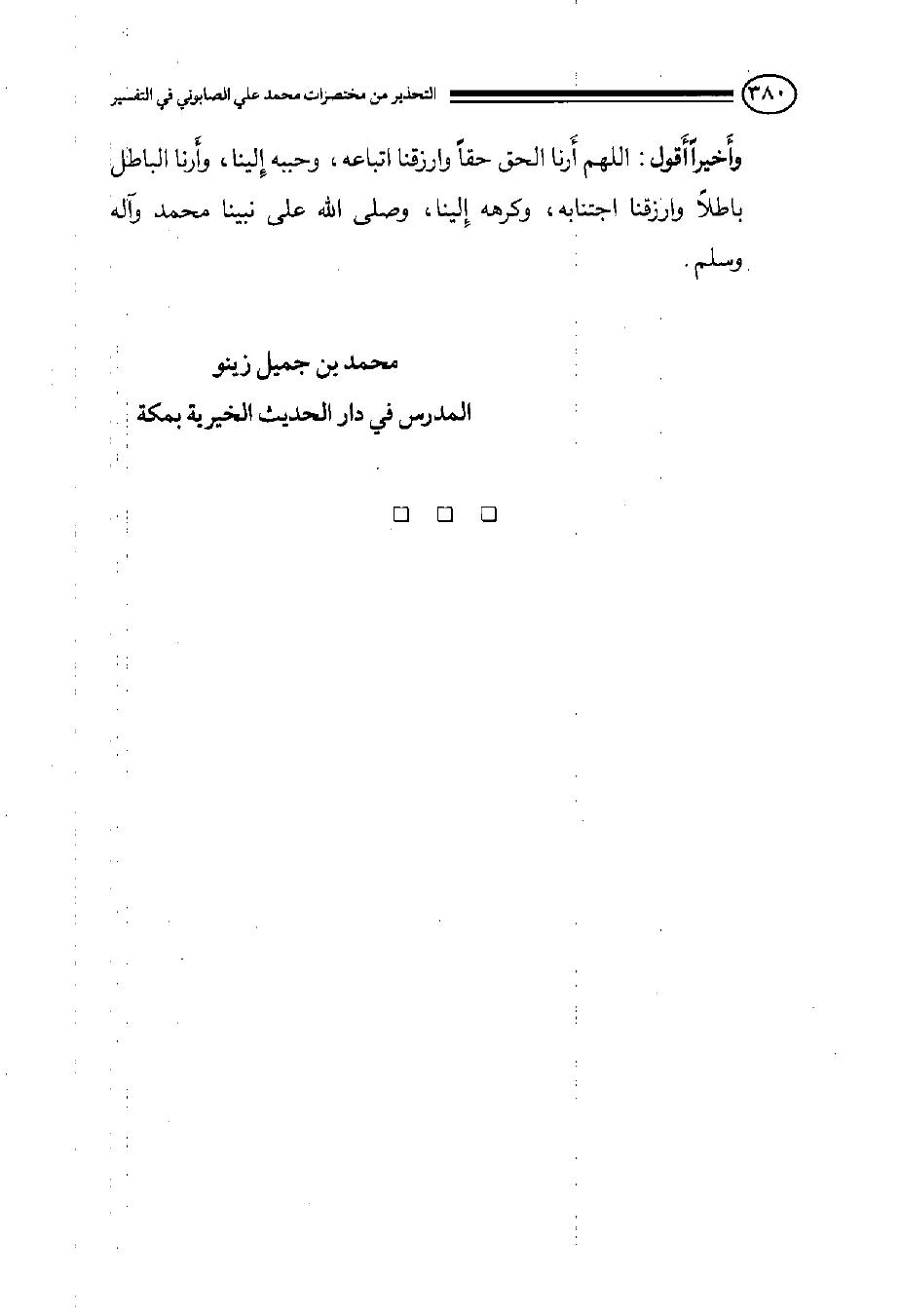 وأَخيراً أَقول: اللهم أَرنا الحق حقاً وارزقنا إتباعه, وحببه إِلينا, وأَرنا الباطل باطلاً وارزقنا اجتنابه, وكرهه إِلينا, وصلى الله علي نبينا محمد وآله وسلم.