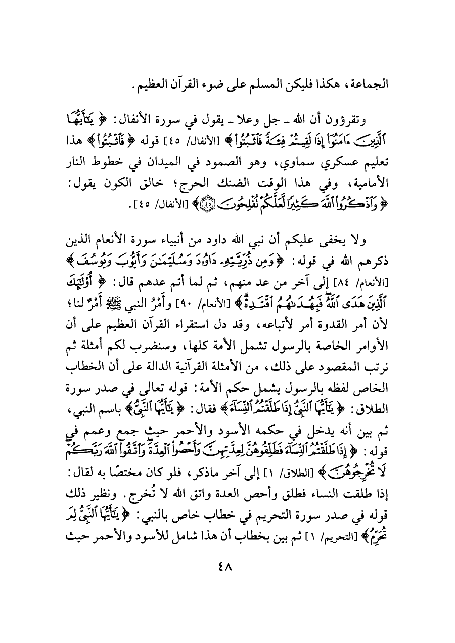 الجماعة، هكذا فليكن المسلم على ضوء القرآن العظيم.