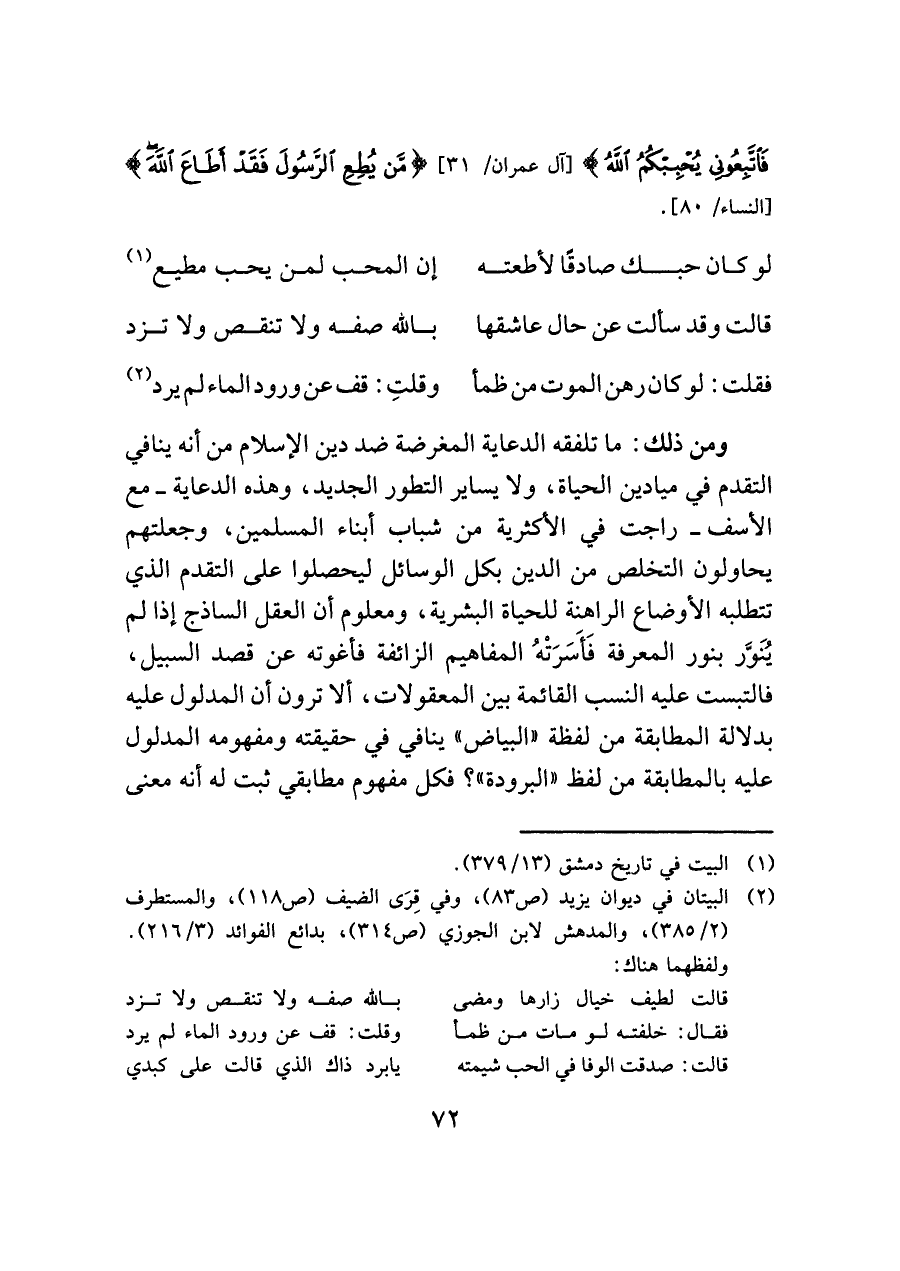لو كان حبك صادقًا لأطعته ... إن المحب لمن يحب مطيع (١)