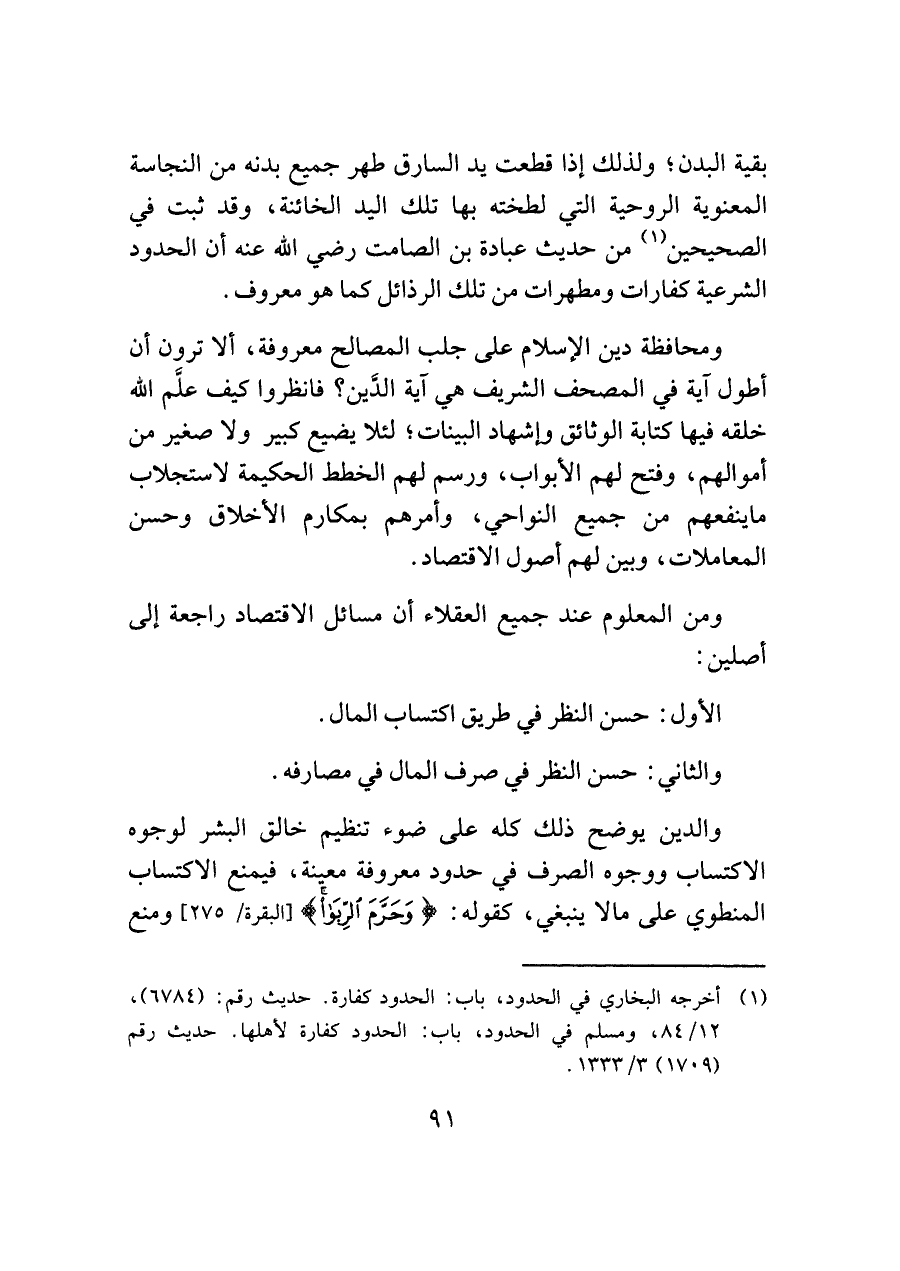 والدين يوضح ذلك كله على ضوء تنظيم خالق البشر لوجوه الاكتساب ووجوه الصرف في حدود معروفة معينة، فيمنع الاكتساب المنطوي على ما لا ينبغي، كقوله: {وَحَرَّمَ الرِّبَا} [البقرة: ٢٧٥] ومنع