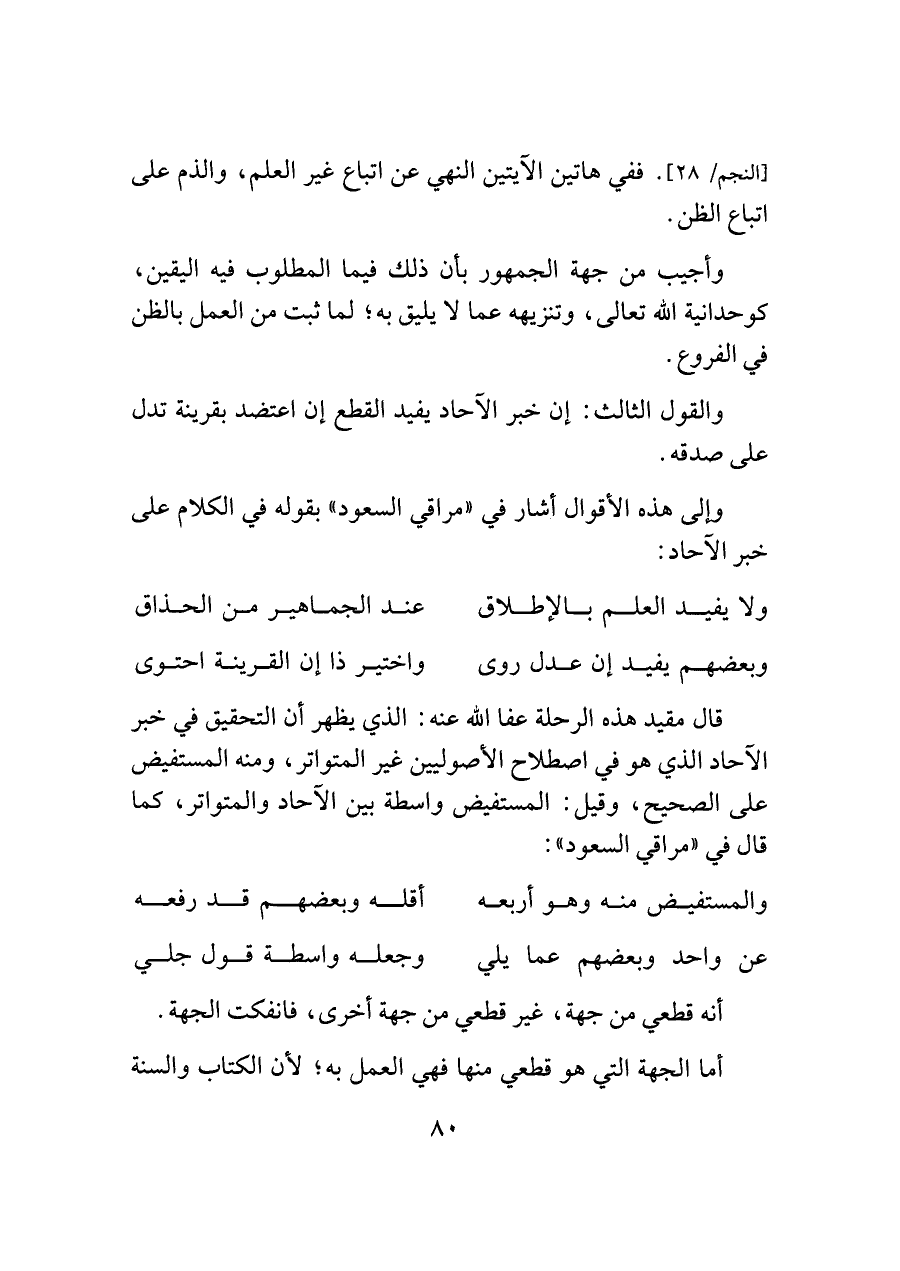 ولا يفيد العلم بالإطلاق ... عند الجماهير من الحذاق