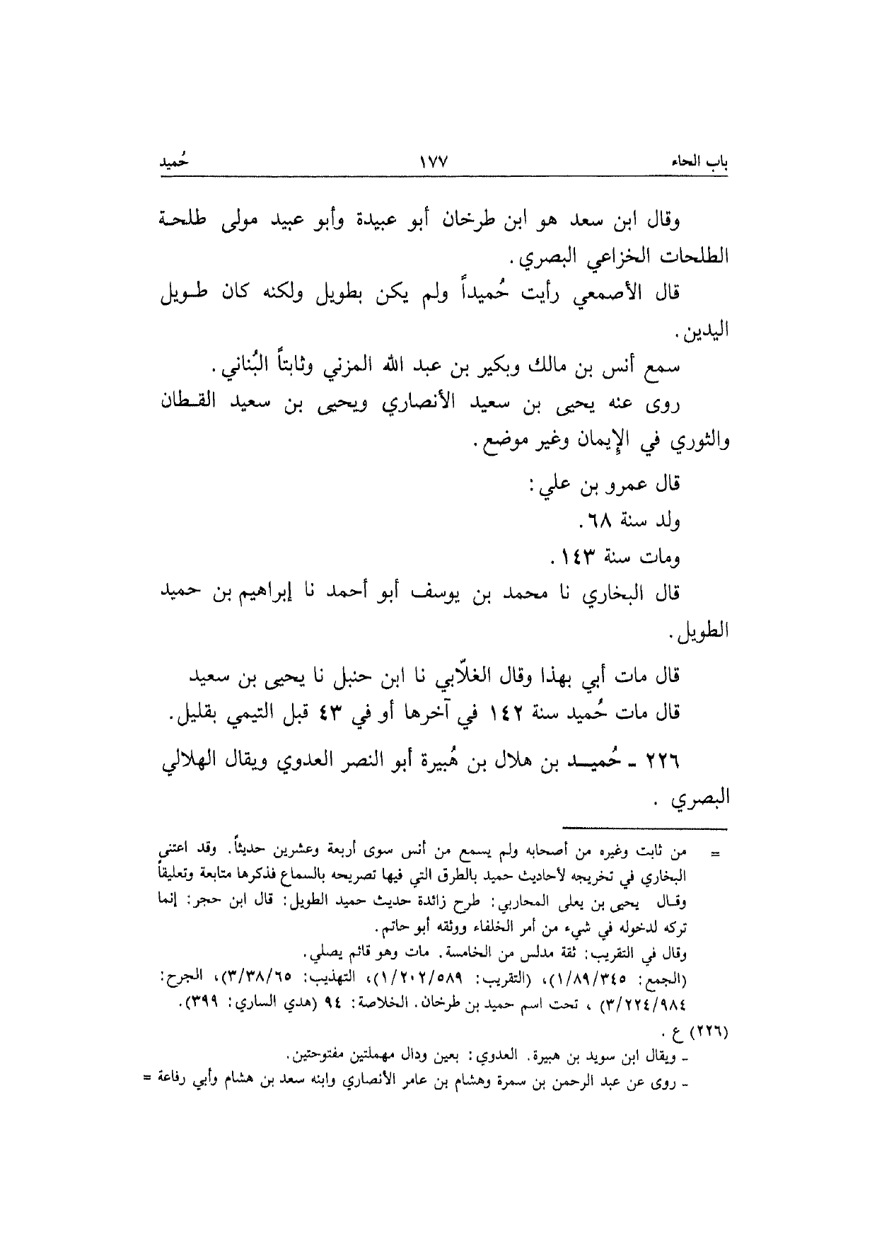 226 - حميد بن هِلَال بن هُبَيْرَة أَبُو النَّصْر الْعَدوي وَيُقَال الْهِلَالِي الْبَصْرِيّ