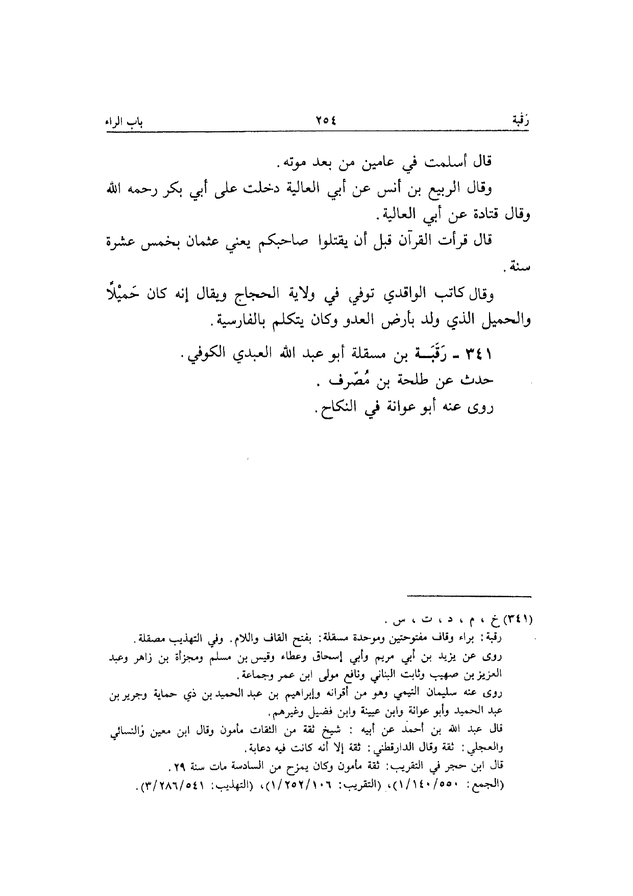 341 - رَقَبَة بن مَسْقَلَة أَبُو عبد الله الْعَبْدي الْكُوفِي حدث عَن طَلْحَة بن مصرف رَوَى عَنهُ أَبُو عوَانَة النِّكَاح