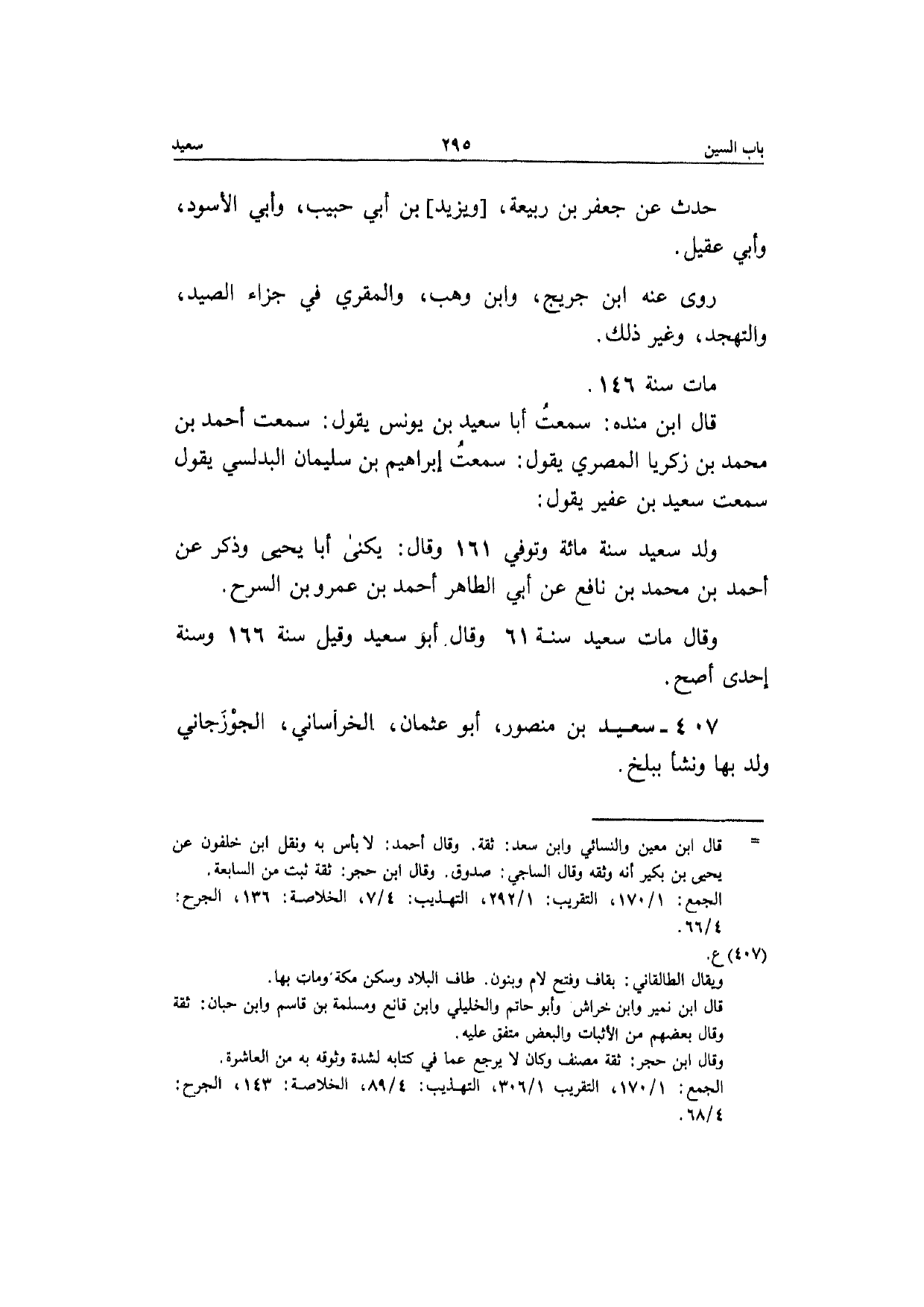 407 - سعيد بن مَنْصُور أَبُو عُثْمَان الْخُرَاسَانِي الْجوزجَاني ولد بهَا وَنَشَأ ببلخ