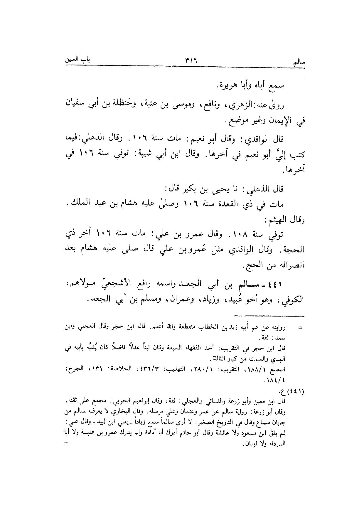 441 - سَالم بن أبي الْجَعْد واسْمه رَافع الْأَشْجَعِيّ مَوْلَاهُم الْكُوفِي وَهُوَ أَخُو عبيد وَزِيَاد وَعمْرَان وَمُسلم بن أبي الْجَعْد