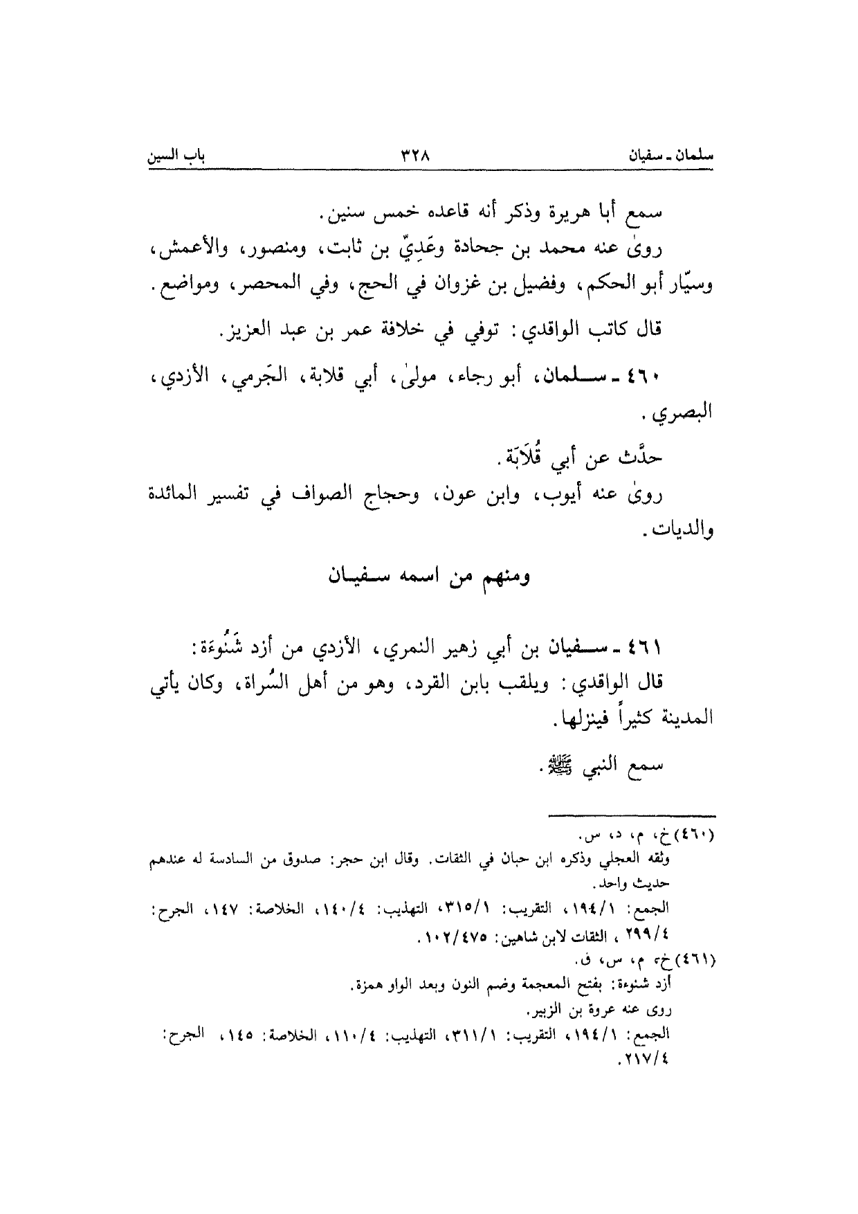 460 - سلمَان أَبُو رَجَاء مولَى أبي قلَابَة الْجرْمِي الْأَزْدِيّ الْبَصْرِيّ حدث عَن أبي قلَابَة رَوَى عَنهُ أَيُّوب وَابْن عون وحجاج الصَّواف فِي تَفْسِير الْمَائِدَة والديات