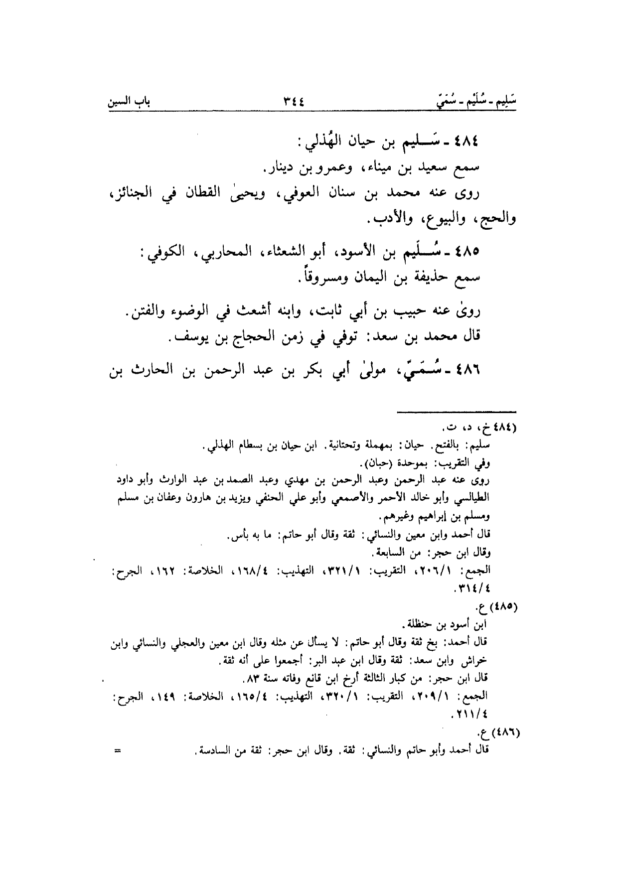 484 - سليم بن حَيَّان الْهُذلِيّ سمع سعيد بن ميناء وَعَمْرو بن دِينَار رَوَى عَنهُ مُحَمَّد بن سِنَان الْعَوْفِيّ وَيَحْيَى الْقطَّان فِي الْجَنَائِز وَالْحج الْبيُوع وَالْأَدب
