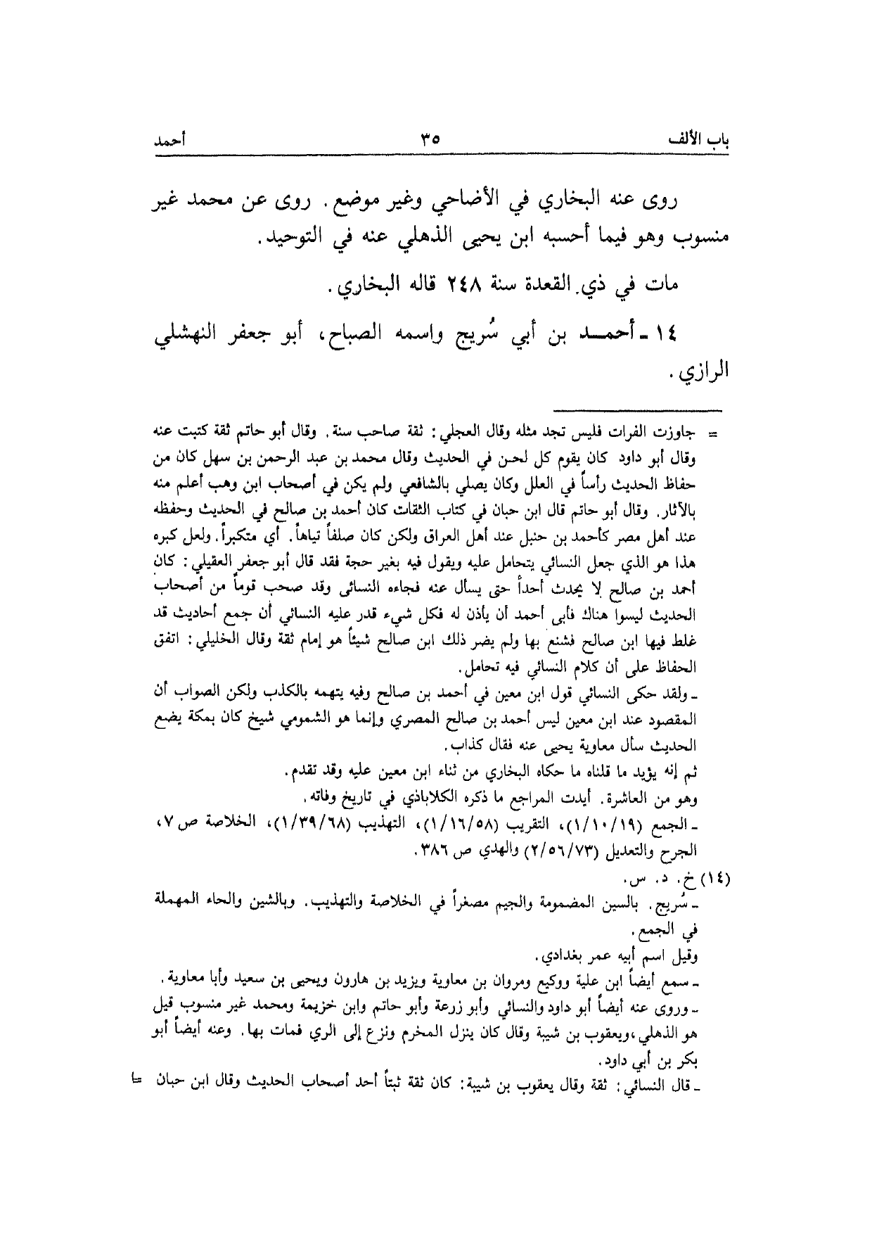 14 - أَحْمد بن أبي سُرَيج واسْمه الصَّباح أَبُو جَعْفَر النَّهْشَلِي الرَّازِيّ