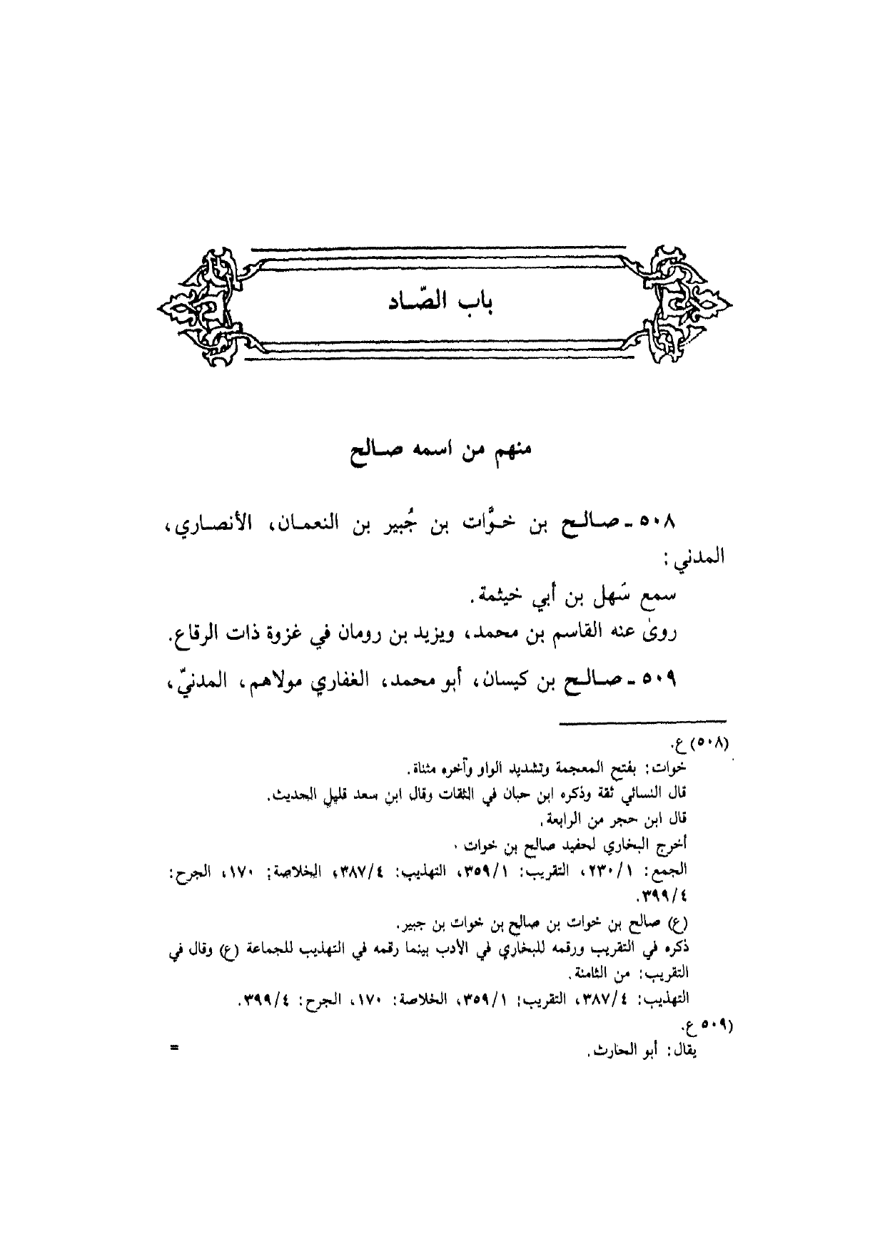 508 - صَالح بن خَوات بن جُبَير بن النُّعْمَان الْأنْصَارِيّ الْمدنِي سمع سهل بن أبي خَيْثَمَة رَوَى عَنهُ الْقَاسِم بن مُحَمَّد وَيزِيد بن رُومَان فِي غَزْوَة ذَات الرّقاع