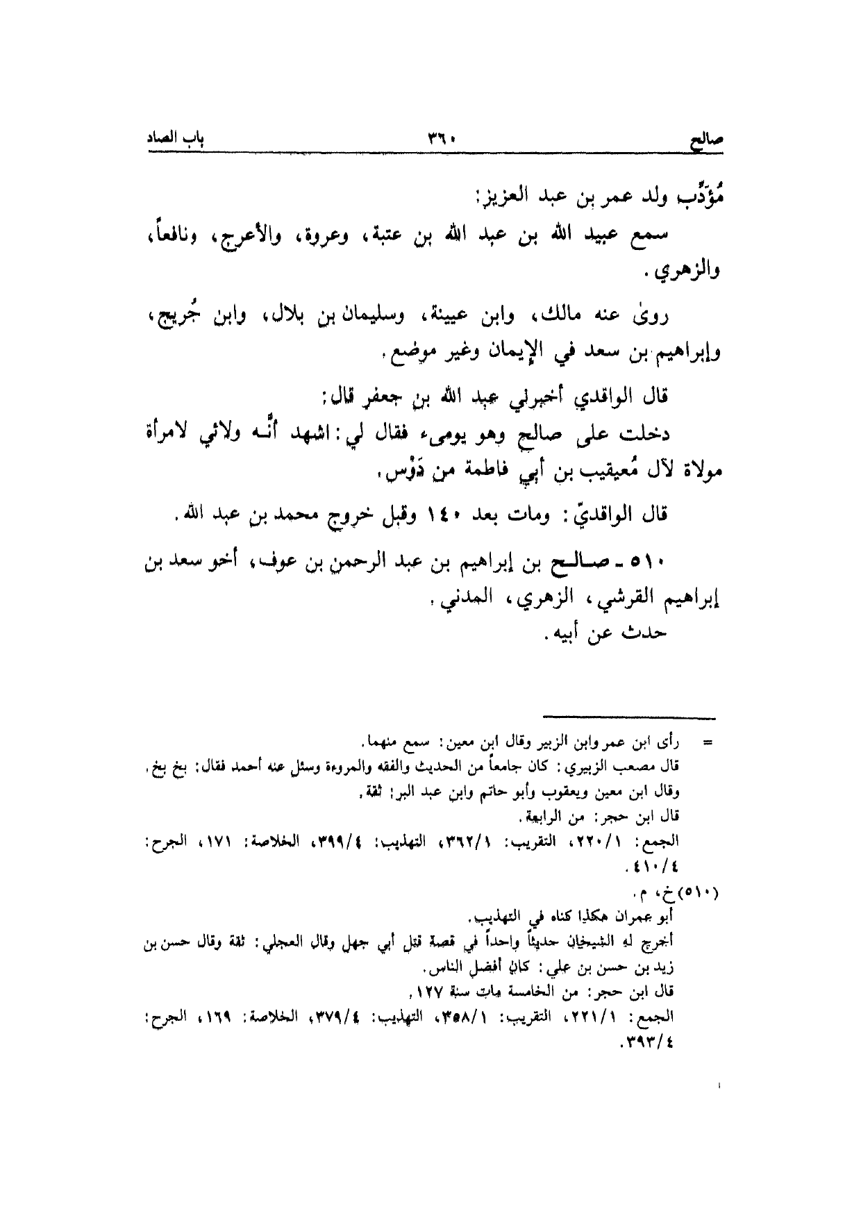 510 - صَالح بن إِبْرَاهِيم بن عبد الرَّحْمَن بن عَوْف أَخُو سعد بن إِبْرَاهِيم الْقرشِي الزُّهْرِيّ الْمدنِي حدث عَن أَبِيه