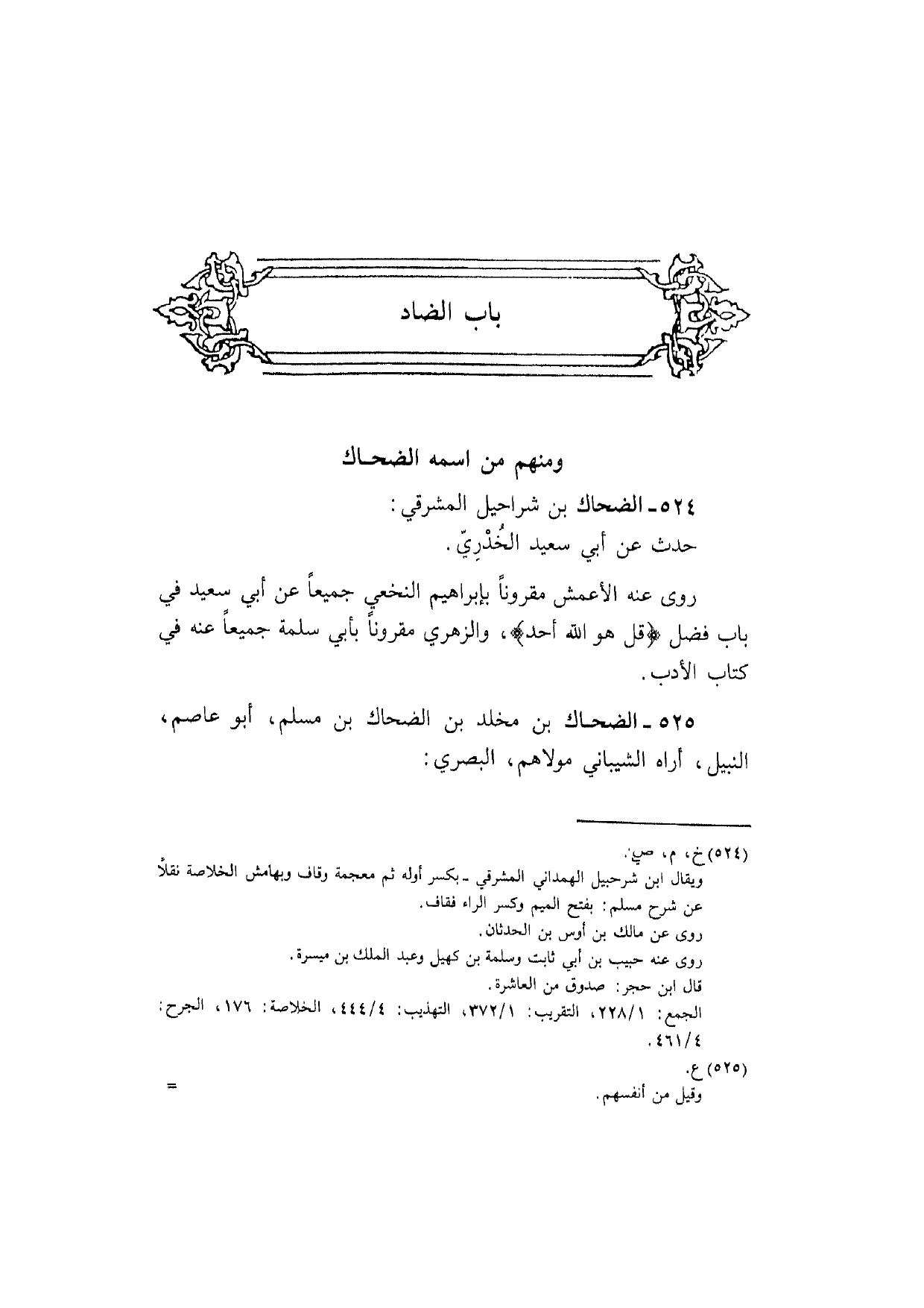 524 - الضَّحَّاك بن شرَاحِيل المشرقي حدث عَن أبي سعيد الْخُدْرِيّ رَوَى عَنهُ الْأَعْمَش مَقْرُونا بإبراهيم النَّخعِيّ جَمِيعًا عَن أبي سعيد فِي بَاب فضل! قل هُوَ الله أحد! وَالزهْرِيّ مَقْرُونا بِأبي سَلمَة جَمِيعًا عَنهُ فِي كتاب الْأَدَب