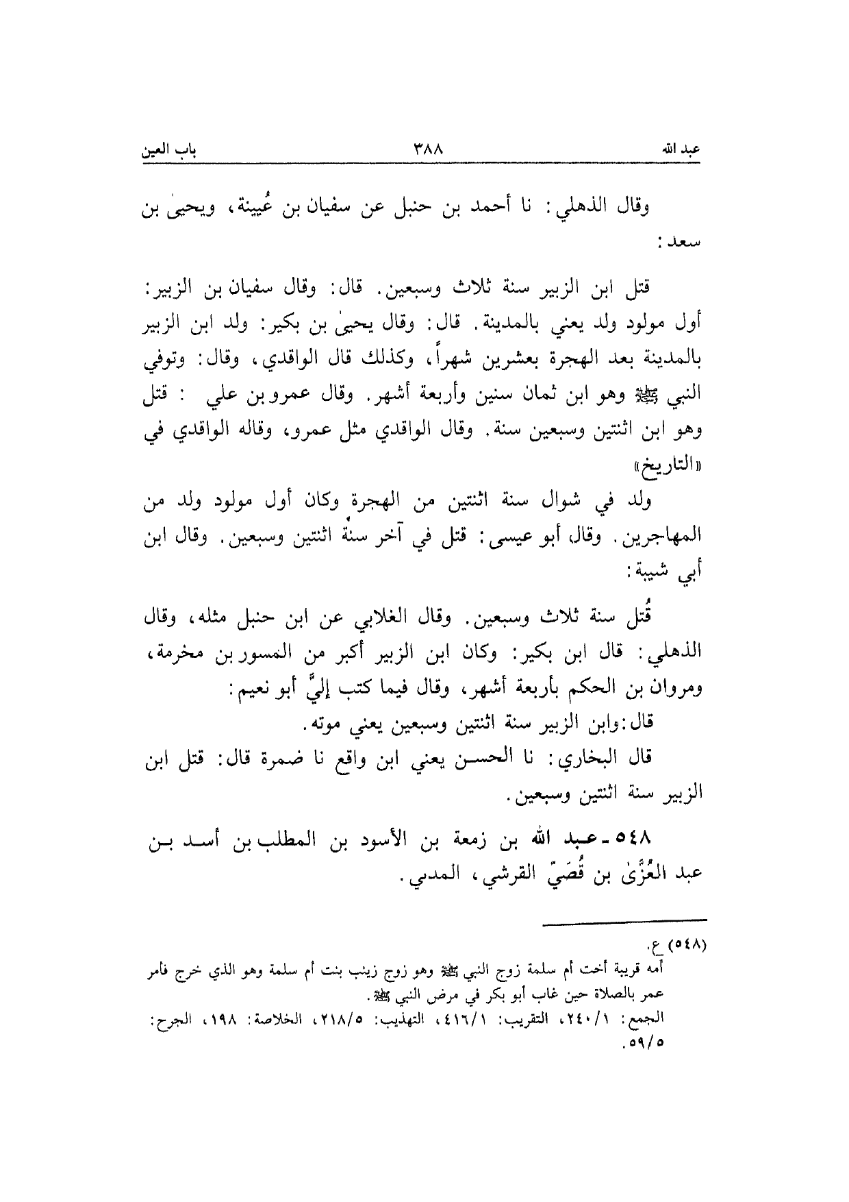 548 - عبد الله بن زَمعَة بن الْأسود بن الْمطلب بن أَسد بن عبد الْعُزَّى بن قصي الْقرشِي الْمدنِي