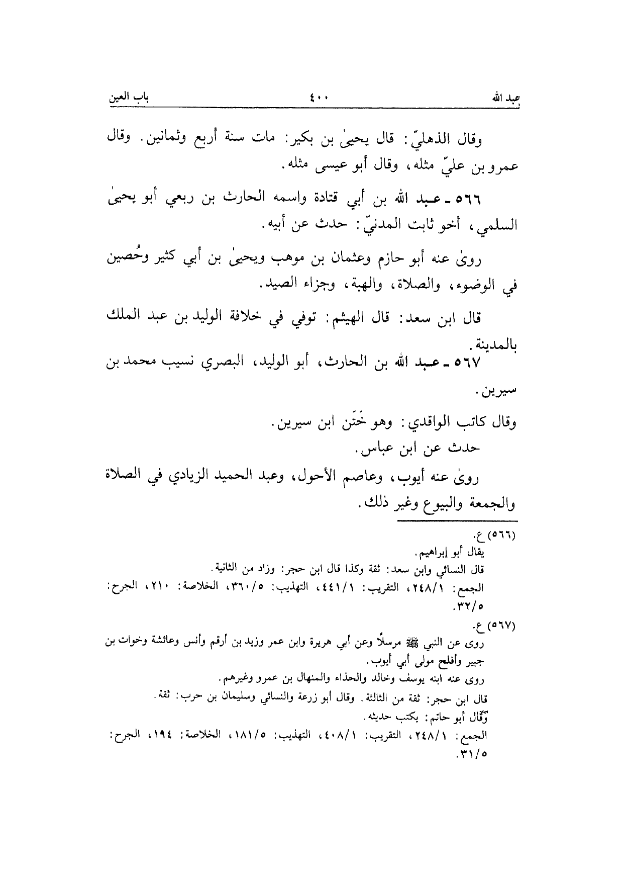 567 - عبد الله بن الْحَارِث أَبُو الْوَلِيد الْبَصْرِيّ نسيب مُحَمَّد بن سِيرِين وَقَالَ كَاتب الْوَاقِدِيّ وَهُوَ ختن ابْن سِيرِين حدث عَن ابْن عَبَّاس رَوَى عَنهُ أَيُّوب وَعَاصِم الْأَحول وَعبد الحميد الزيَادي فِي الصَّلَاة وَالْجُمُعَة والبيوع وَغير ذَلِك