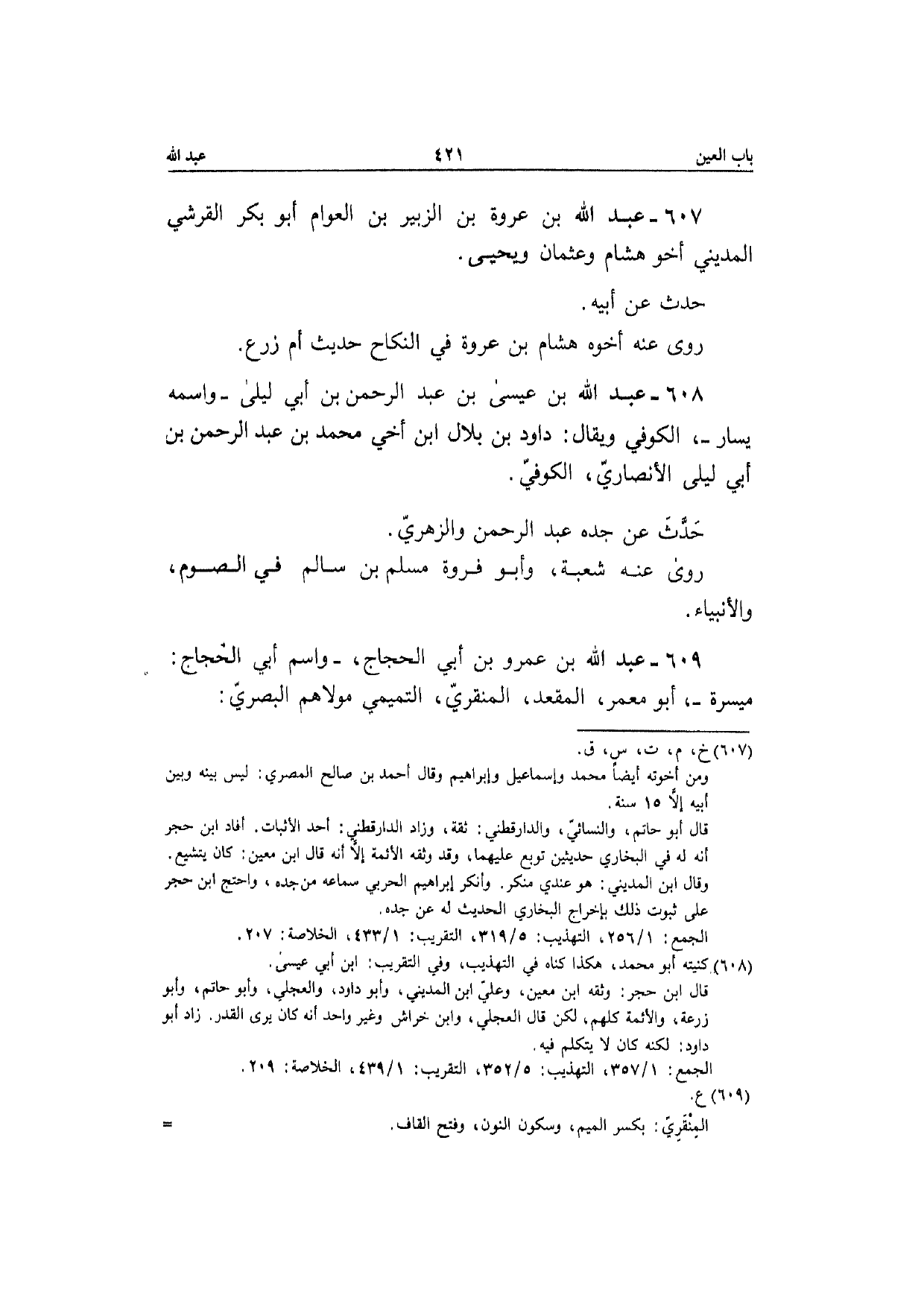 609 - عبد الله بن عَمْرو بن أبي الْحجَّاج وَاسم أبي الْحجَّاج ميسرَة أَبُو معمر المقعد الْمنْقري التَّمِيمِي مَوْلَاهُم الْبَصْرِيّ