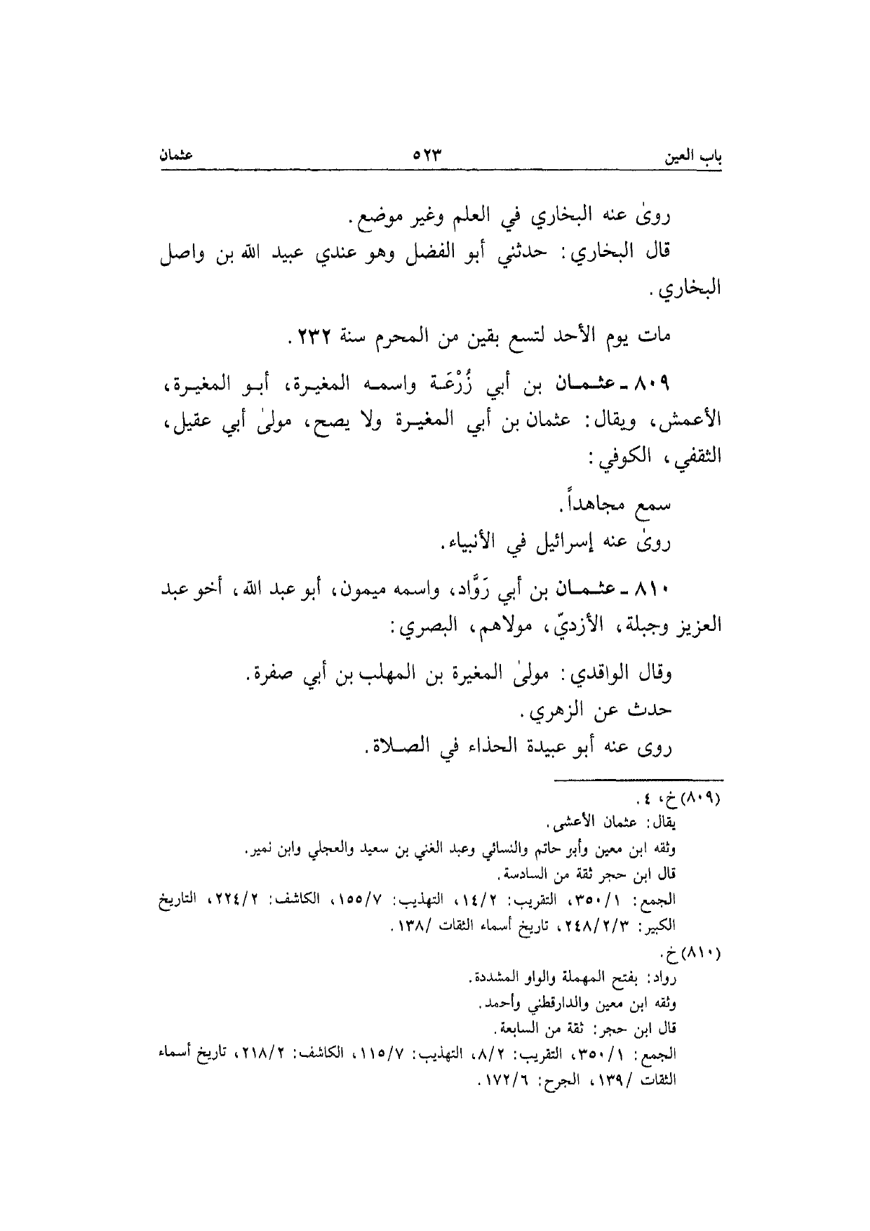 809 - عُثْمَان بن أبي زرْعَة واسْمه الْمُغيرَة أَبُو الْمُغيرَة الْأَعْمَش وَيُقَال عُثْمَان بن أبي الْمُغيرَة وَلَا يَصح مولَى أبي عقيل الثَّقَفِيّ الْكُوفِي سمع مُجَاهدًا رَوَى عَنهُ إِسْرَائِيل فِي الْأَنْبِيَاء