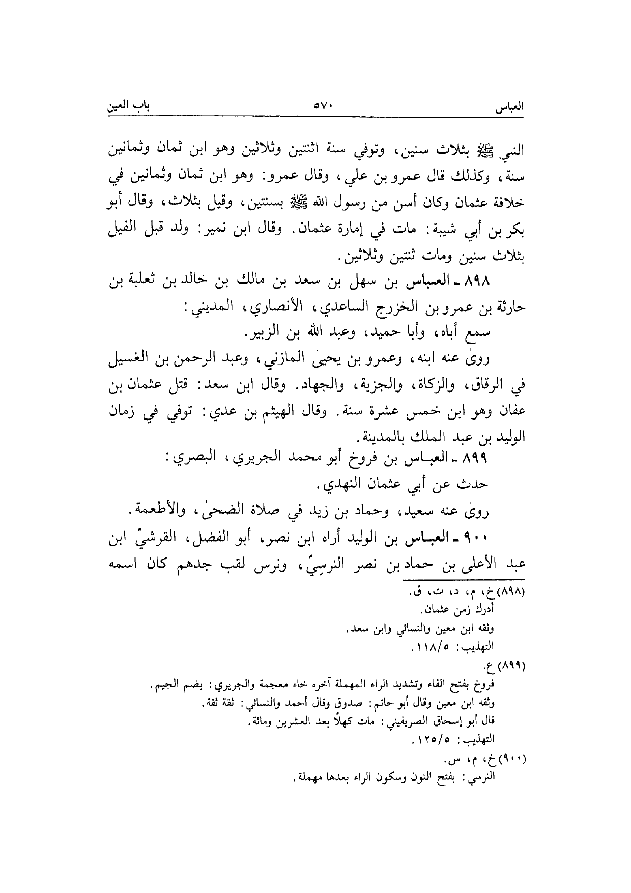 899 - الْعَبَّاس بن فروخ أَبُو مُحَمَّد الْجريرِي الْبَصْرِيّ حدث عَن أبي عُثْمَان النَّهْدِيّ رَوَى عَنهُ سعيد وَحَمَّاد بن زيد فِي صَلَاة الضُّحَى والأطعمة
