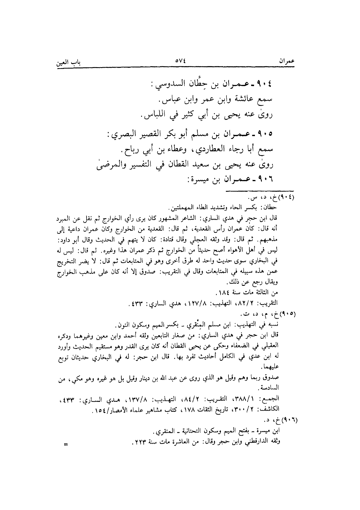 905 - عمرَان بن مُسلم أَبُو بكر الْقصير الْبَصْرِيّ سمع أَبَا رَجَاء العطاردي وَعَطَاء بن أبي رَبَاح رَوَى عَنهُ يَحْيَى بن سعيد الْقطَّان فِي التَّفْسِير والمرضى