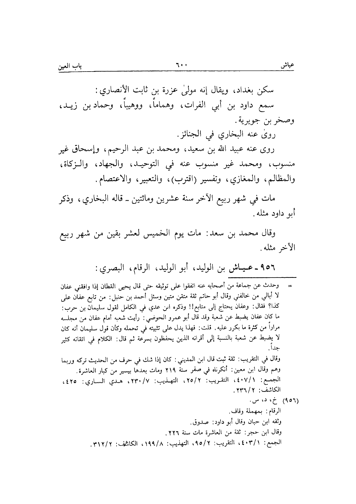 956 - عَيَّاش بن الْوَلِيد أَبُو الْوَلِيد الرقام الْبَصْرِيّ