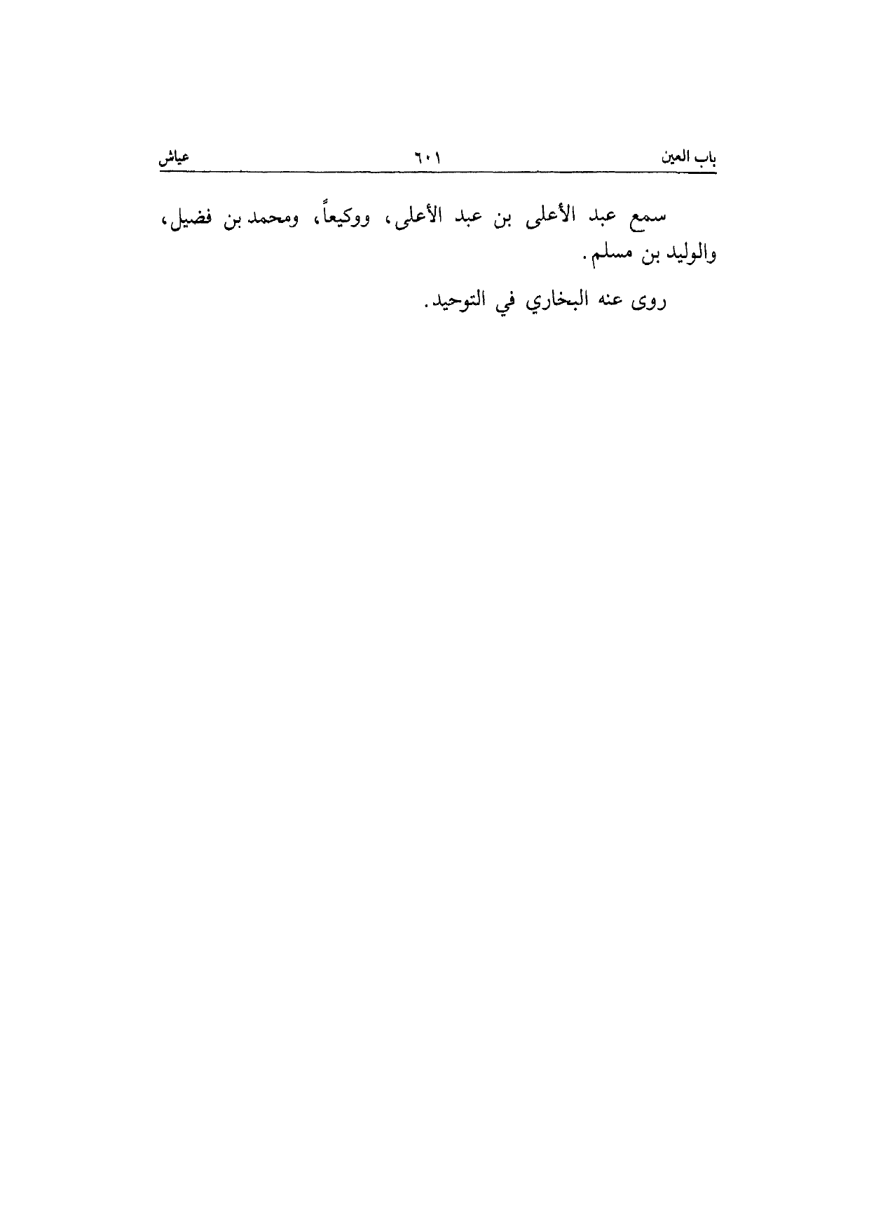 سمع عبد الْأَعْلَى ووكيعا وَمُحَمّد بن فُضَيْل والوليد بن مُسلم رَوَى عَنهُ البُخَارِيّ فِي التَّوْحِيد