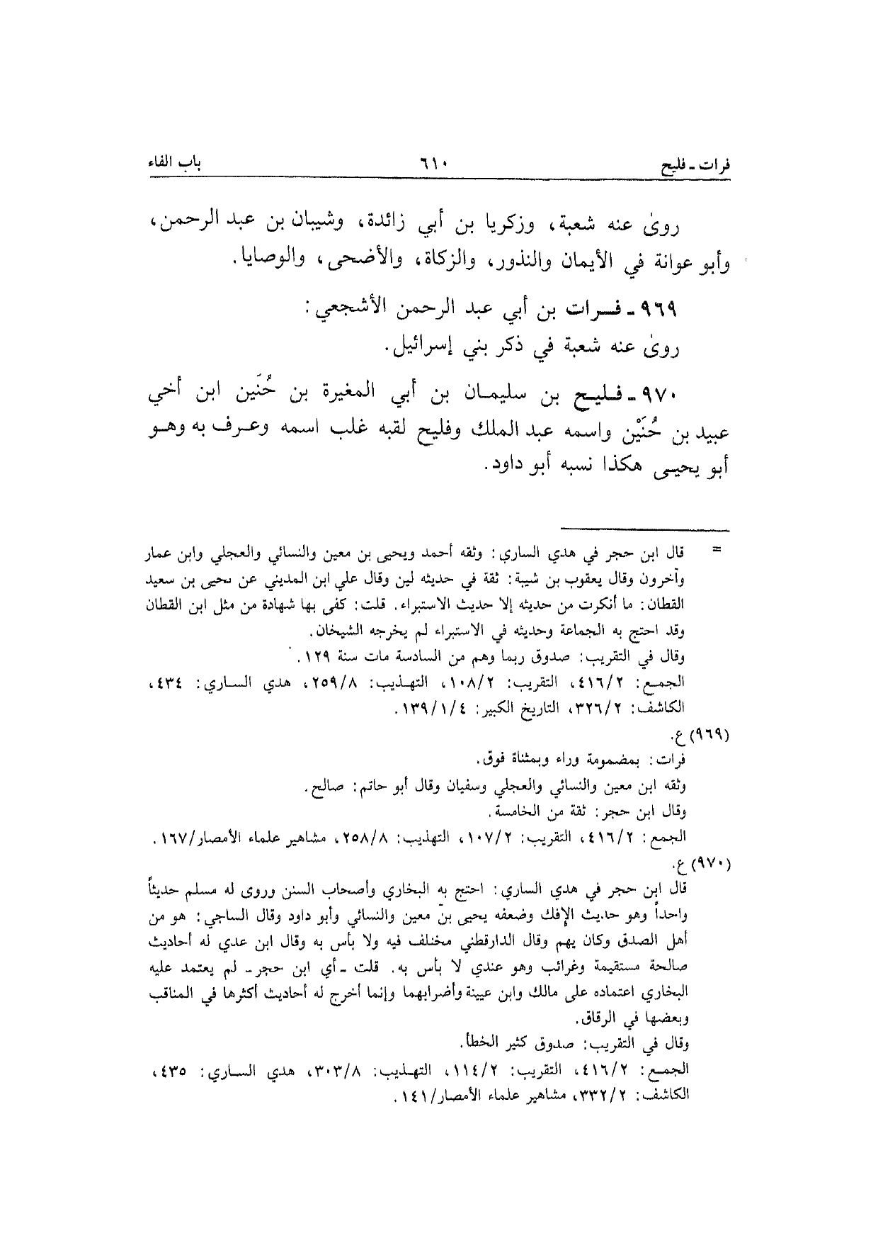 969 - فرات بن أبي عبد الرَّحْمَن الْأَشْجَعِيّ رَوَى عَنهُ شُعْبَة فِي ذكر بني إِسْرَائِيل