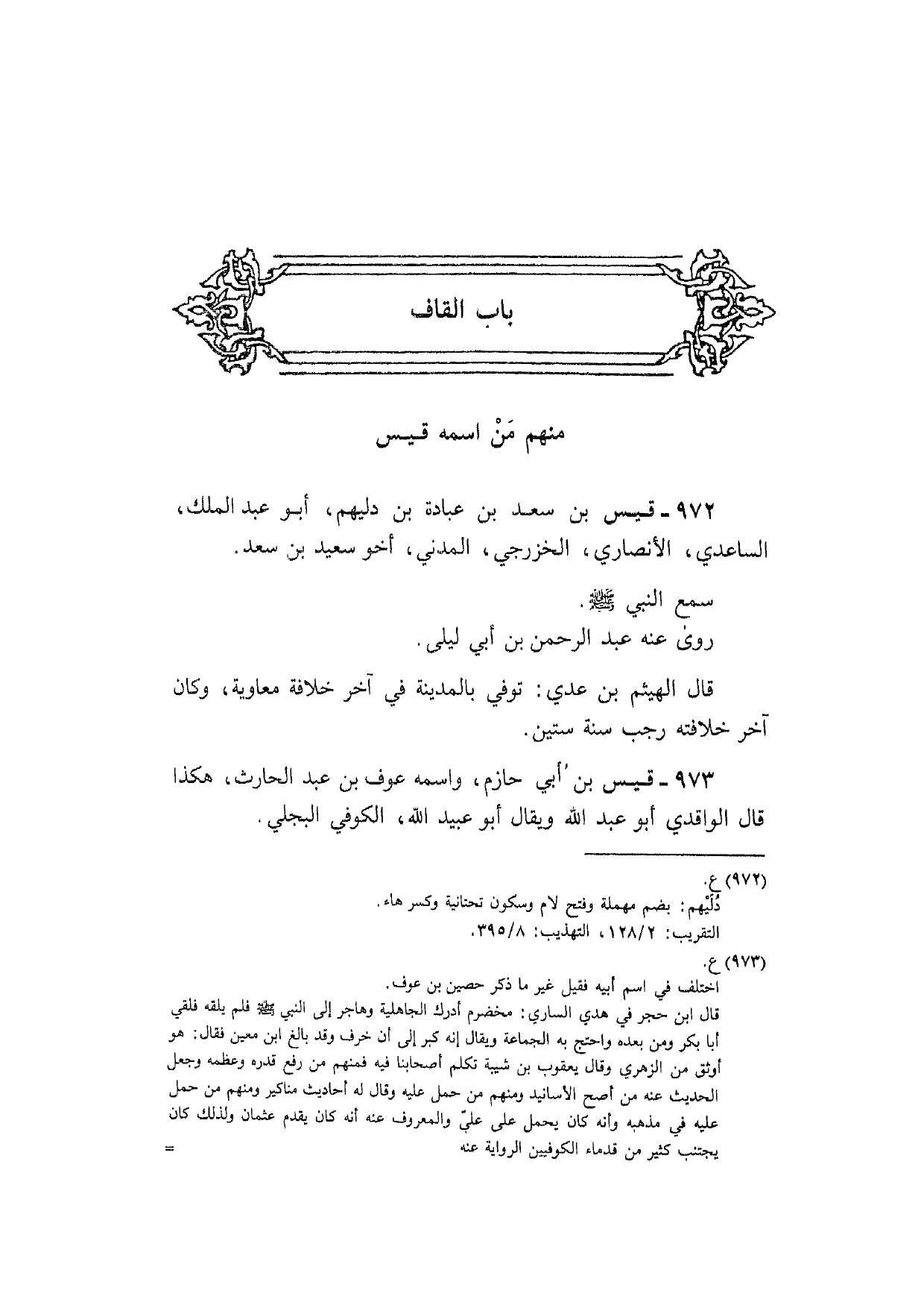 973 - قيس بن أبي حَازِم واسْمه عَوْف بن عبد الْحَارِث هَكَذَا قَالَ الْوَاقِدِيّ أَبُو عبد الله وَيُقَال أَبُو عبيد الله الْكُوفِي البَجلِيّ