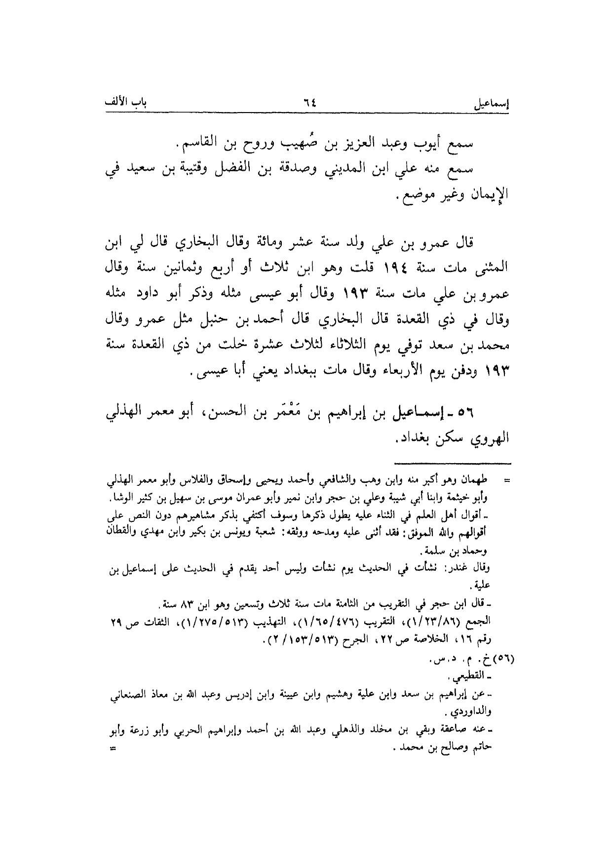56 - إِسْمَاعِيل بن إِبْرَاهِيم بن معمر بن الْحسن أَبُو معمر الْهُذلِيّ الْهَرَوِيّ سكن بَغْدَاد