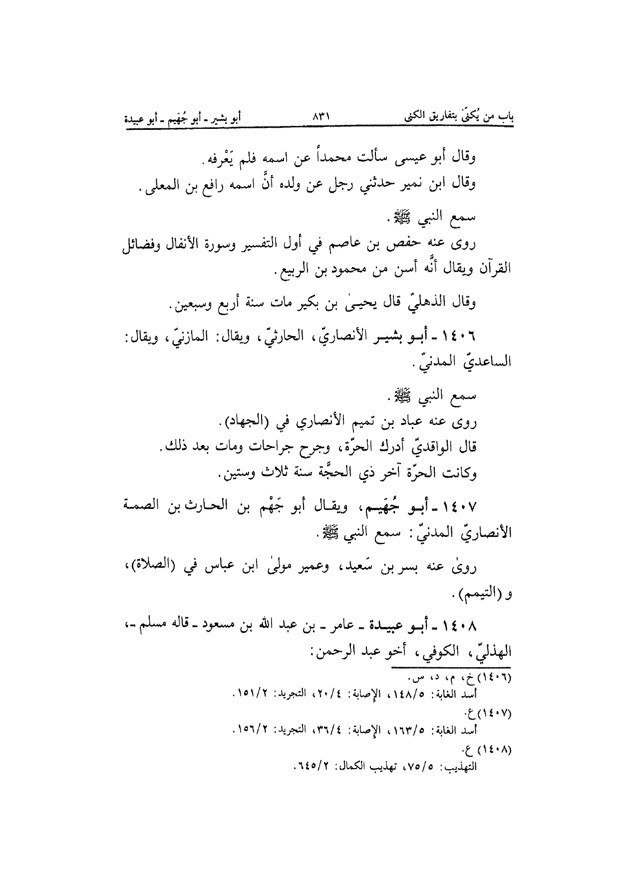 1408 - أَبُو عُبَيْدَة عَامر بن عبد الله بن مَسْعُود قَالَه مُسلم الْهُذلِيّ الْكُوفِي أَخُو عبد الرَّحْمَن