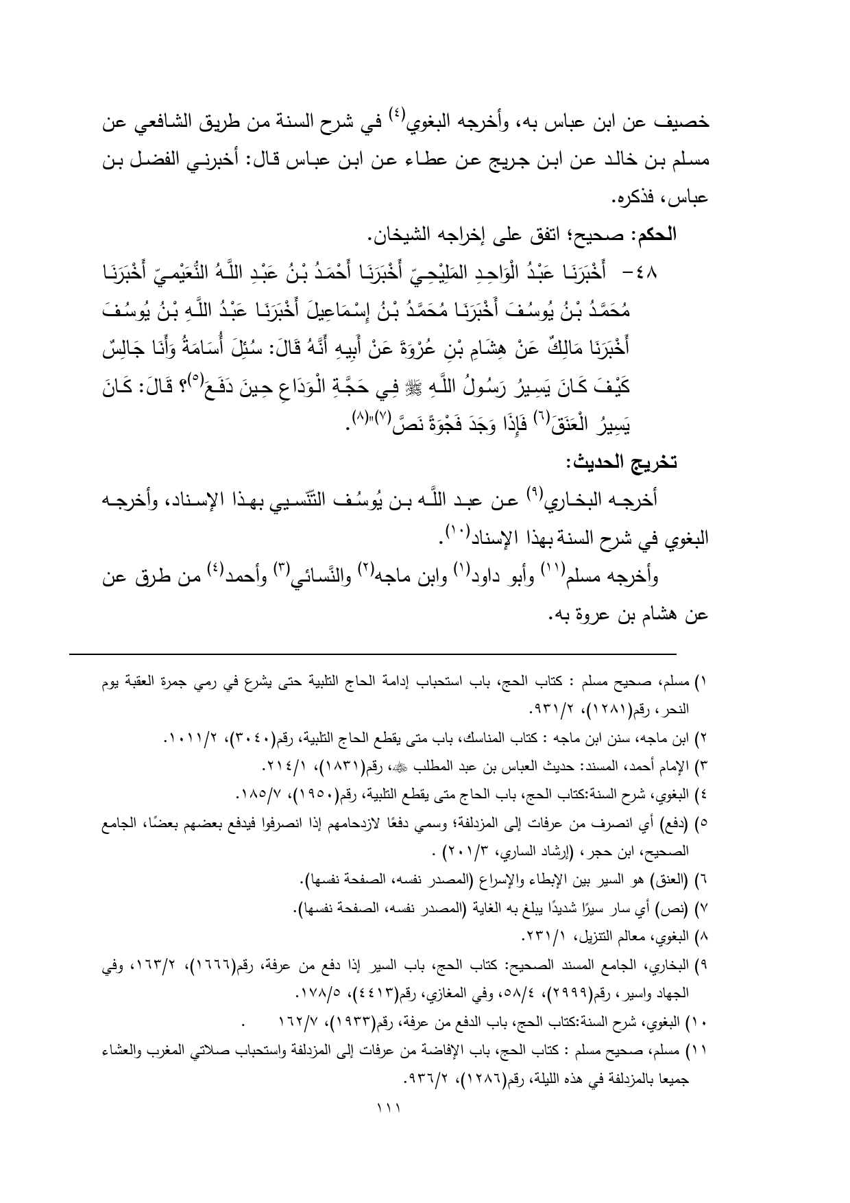 (¬7) البغوي، شرح السنة: كتاب الحج، باب الدفع من عرفة، رقم (1933)، 7/ 162 ... .