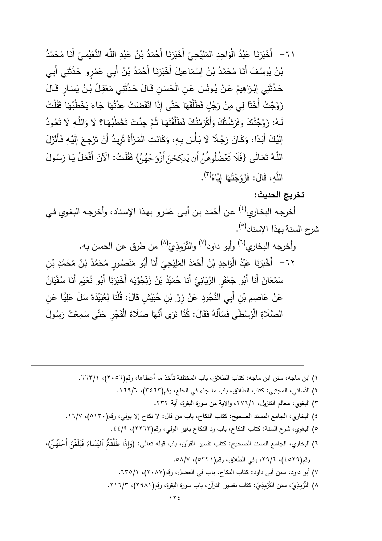 (¬1) البغوي، معالم التنزيل، 1/ 276، والآية من سورة البقرة، آية 232.