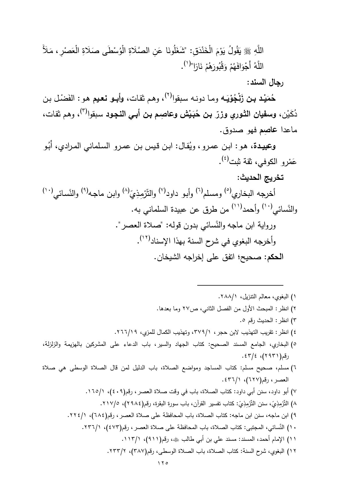 (¬12) البغوي، شرح السنة: كتاب الصلاة، باب الصلاة الوسطى، رقم (387)، 2/ 233.