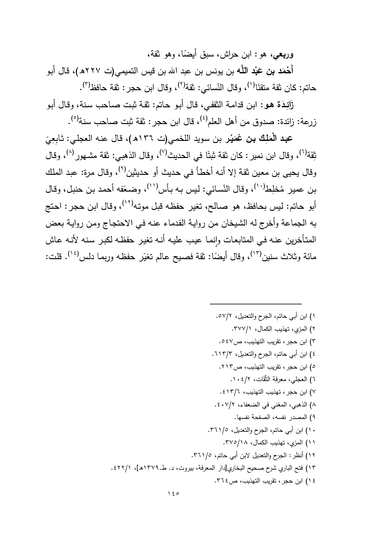 (¬14) ابن حجر، تقريب التهذيب، ص 364.