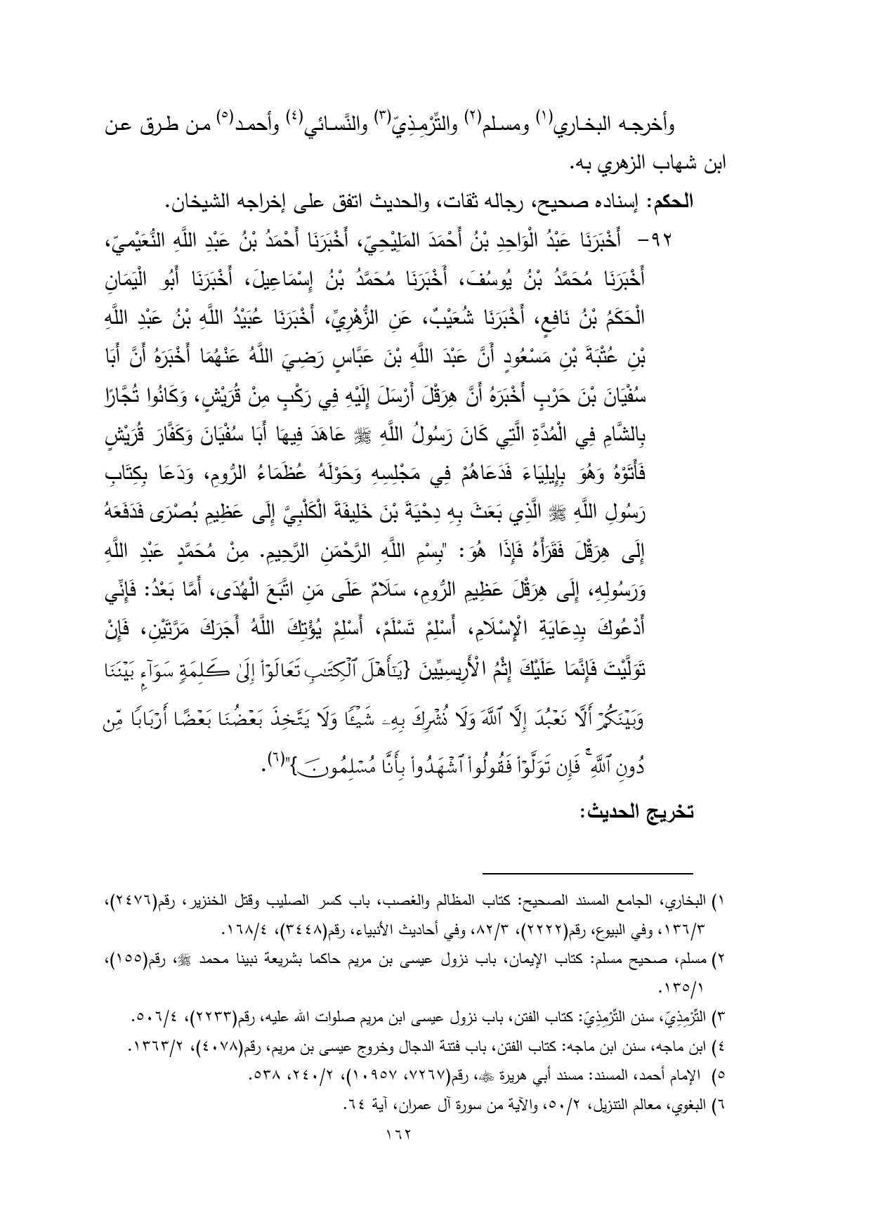 وأخرجه البخاري (¬1) ومسلم (¬2) والتِّرْمِذِيّ (¬3) والنَّسائي (¬4) وأحمد (¬5) من طرق عن ابن شهاب الزهري به.