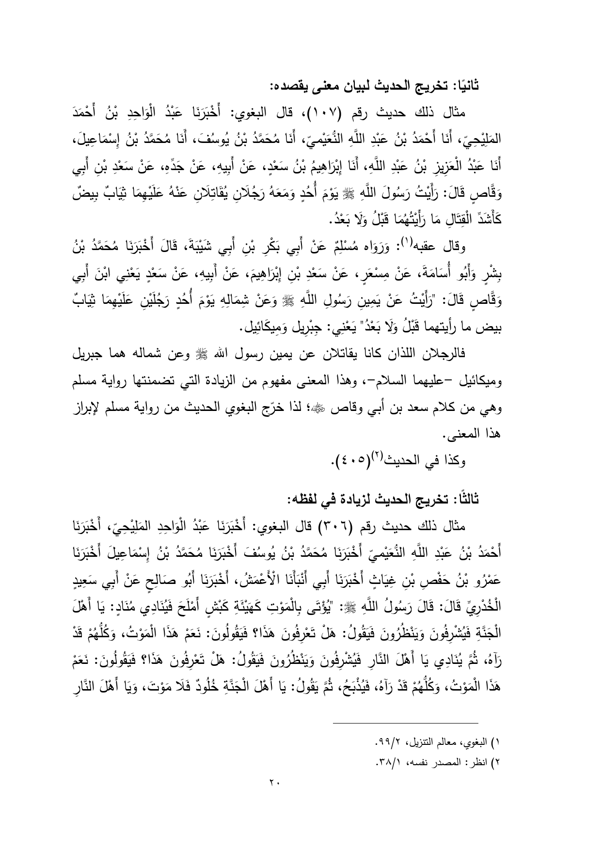 ثانيًا: تخريج الحديث لبيان معنى يقصده: