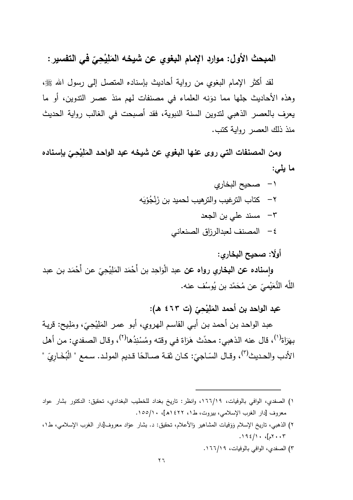 كتاب روايات البغوي في تفسيره معالم التنزيل عن شيخه عبد الواحد المليحي "تخريج ودراسة"