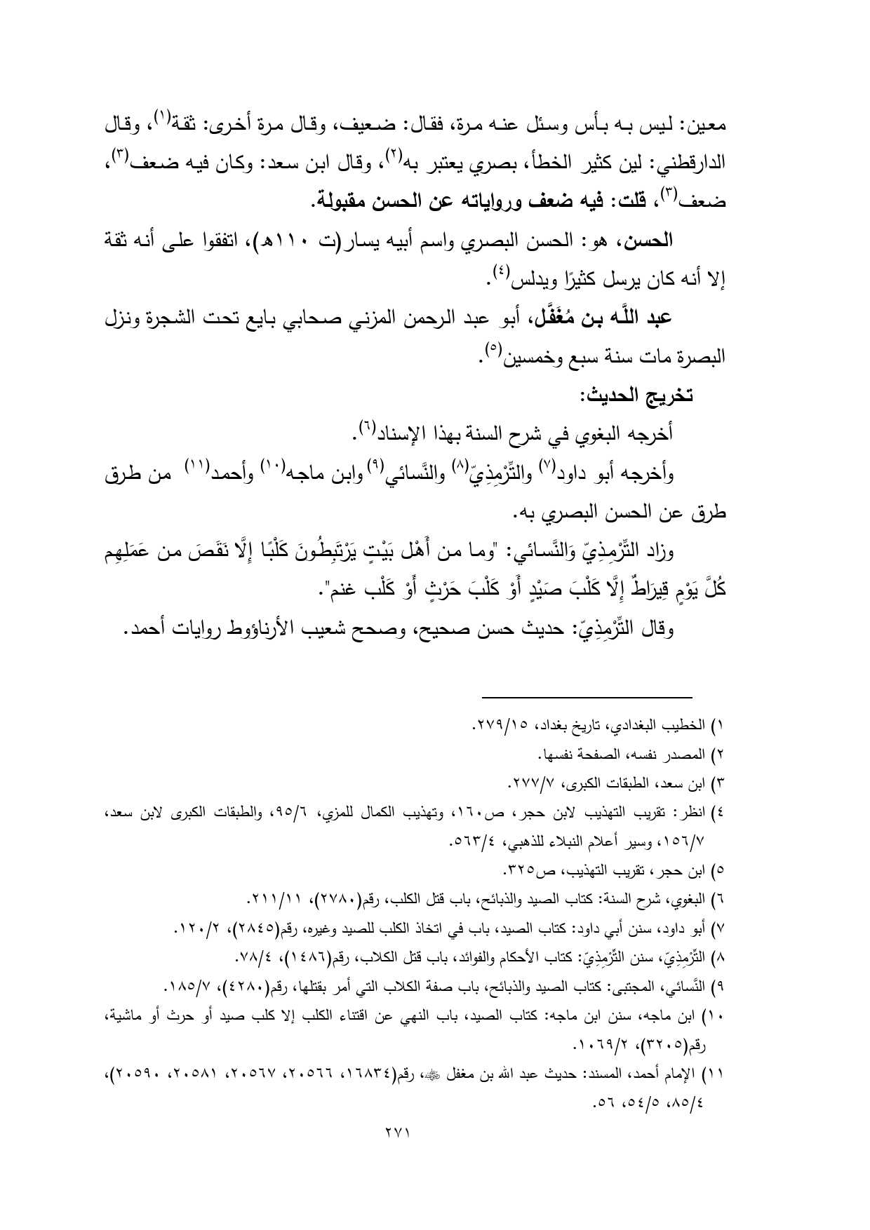(¬6) البغوي، شرح السنة: كتاب الصيد والذبائح، باب قتل الكلب، رقم (2780)، 11/ 211.
